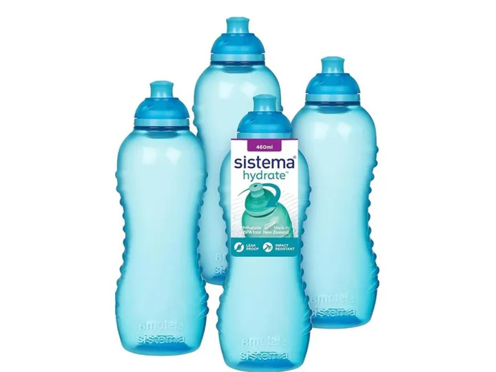 Sistema Brown-box kombipakke med 4 stk. Twist ‘n’ Sip drikkedunk 460ml i blå. 4 stk. sistema Twist ‘n’ Sip 460ml. Twist ‘n’ Sip drikkedunk fra sistema i den populære 460ml størrelse med Twist 'n' Sip lukning, som er nem og hygiejnisk at have med på farten, i skole eller til fritidsaktiviteter. Drikkedunken er i transparent farve så man let kan se, hvor meget der er tilbage i flasken. Drikkedunken er ventileret, så der ikke opstår undertryk i flasken, og den unikke Twist 'n' Sip lukning gør den ekstra hygiejne venlig, da man ikke skal røre drikketuden for at åbne og lukke flasken. Drikketuden lukker tæt, og er nem for barnet selv at betjene. Drikkedunken er nem at rengøre, da den tåler opvaskemaskine (øverste hylde anbefales). Ønskes vandet ekstra koldt, tåler drikkedunken også fryser. 100% fri for BPA og Phthalater. Farve: Ocean Blue Indhold: 460ml. Leveres i brun papkasse, derfor mest velegnet til webshop!
