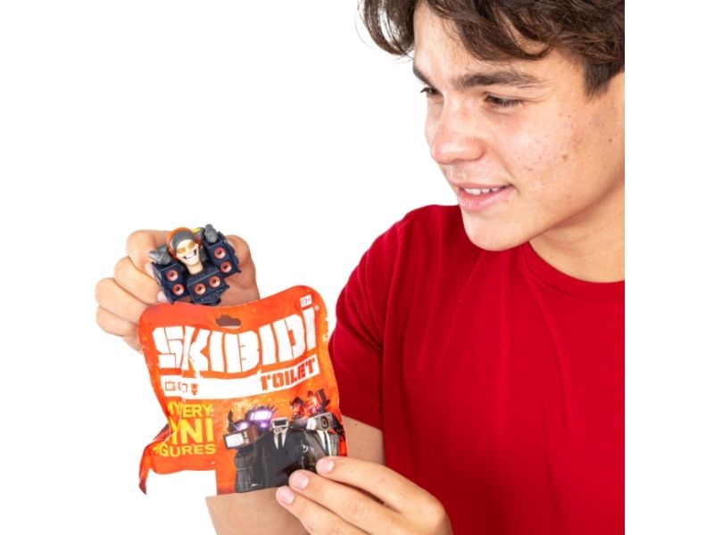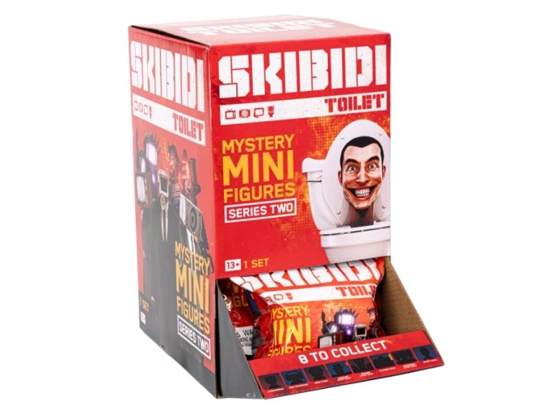 Skibidi Toilet, den hotteste webserie på YouTube, følger en vedvarende fiktiv krig mellem toiletter med menneskehoveder og menneskelignende karakterer med elektroniske enheder som hoveder. Nu kan fans tage samleobjekter af disse karakterer med hjem, som fanger al spændingen fra skærmen! Hver Mystery Figure blind pack indeholder 1 Mystery Skibidi Toilet-figur – med 9 unikke karakterer at samle på i hele sortimentet. Den første samling indeholder karakterer fra begge sider af kampen, så fans kan finde ud af, om de har pakket et Skibidi Toilet eller et medlem af alliancen ud! Skibidi Toilet-følgere vil helt sikkert ønske at samle dem alle! Tjek DaFuq!?Boom! YouTube-kanalen og se legetøjet i aktion i videoerne!