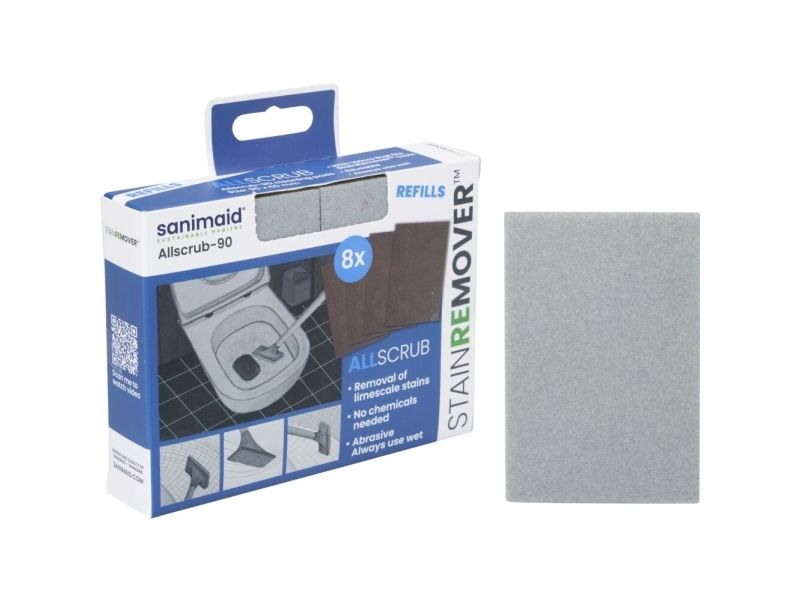 ALLscrub skuresvampe fjerner kalk og rustpletter. Svampen har en slibende effekt som skal bruges i våd tilstand på keramiske overflader.