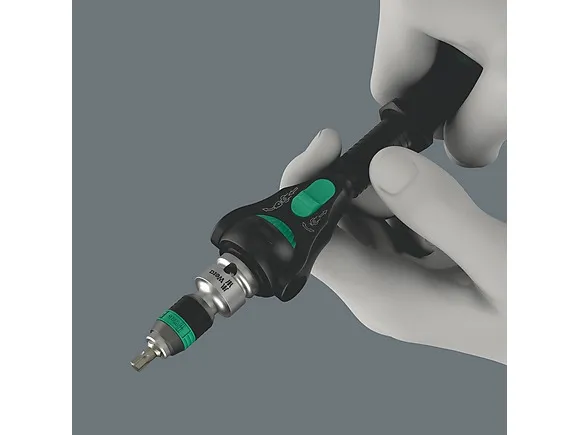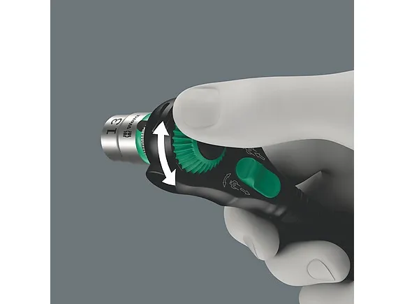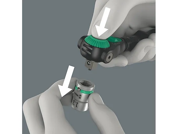 8000 A Black Edition Zyklop speed-skralde med 1/4-drev, 1/4 x 152 mm Anvendelse: Til 1/4-firkanttopnøgleindsatser samt 1/4-forbindelsesdele med firkantdrev, med kuglelås udførelse: Svingmassekonstruktion og gribesikker hurtigdrejemuffe for høj arbejdshastighed Frit drejeligt skraldehoved Defineret stilling ved 0°, 90° mod venstre og højre samt 15° fra 90° indad Kan anvendes som en almindelig skruenøgle i 0°-stilling Udløsning med trykknap Venstre-/højreomskiftning, fin fortanding, lille returvinkel på 5°. Black Edition (matforkromet-sort forkromet). Greb: Flerkomponent kraftformet greb gør arbejdet lettere Cyklop-skralde med 1/4-drev Førsteklasses og robust mat sort forkromet overflade. Den fine fortanding med 72 tænder muliggør en lav tilbagerulningsvinkel på 5°. Skraldehovedet kan svinge frit og kan ved hjælp af en mekanisme låses fast i enhver position. Problemfri betjening med god plads til hånden selv i meget snævre situationer og på svært tilgængelige steder. Den definerede fastgørelse ved 0°, 15° og 90° til venstre og højre garanterer et sikkert arbejde med skraldenøglen, helt uden udskridning. I positionen 0° kan skraldenøglen med adapter og bit anvendes som en almindelig skruetrækker. Svingmasse-konstruktionen sørger for acceleration, når der skal skrues. Den rotationssymmetriske opbygning af kraftform-grebet og friløbshylsteret understøtter en hurtig arbejdsgang. Takket være den fremragende tilpassede form på Kraftform-grebet kan der undgås skader som vabler og hård hud. De hårde materialer, der er anvendt til grebet sikrer, at hånden ikke griber/klæber fast i håndtaget, når der arbejdes med enheden. De bløde og skridsikre zoner muliggør en stor kraftoverførelse - helt uden tab. Til 1/4-firkanttopnøgleindsatser samt 1/4-forbindelsesdele med firkantdrev, med kuglelås.