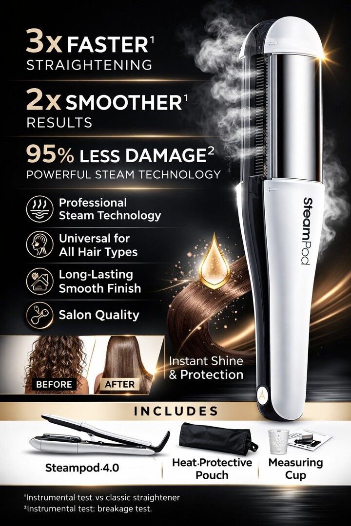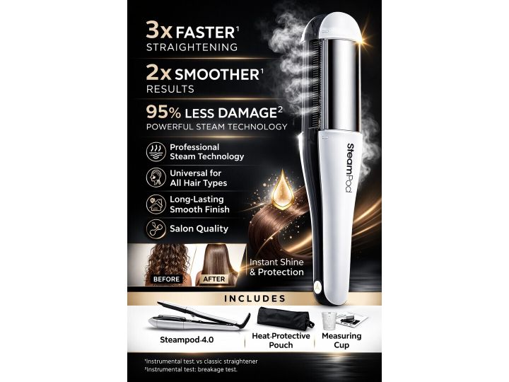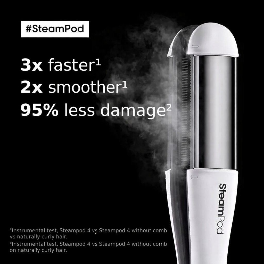 | L’Oréal Professionnel Steampod 4.0 * Profesjonell dampteknologi med mindre varmeskader* * Opptil 2 ganger glattere og mer glansfullt hår * Langvarige salongresultater * Passer for alle hårtyper * Rask og effektiv styling Bruksanvisning – L’Oréal Professionnel Steampod 4.0 1. Start med rent, håndkletørket eller helt tørt hår. 2. Fyll vanntanken med demineralisert vann. 3. Velg temperaturen som passer din hårtype (lavere for fint hår, høyere for tykt hår). 4. Ta én seksjon om gangen og før Steampoden sakte gjennom håret – én jevn bevegelse fra rot til tupp. 5. Gjenta etter behov for ekstra glatte og langvarige resultater. For best resultat anbefales det å bruke varmebeskyttelse før styling. |