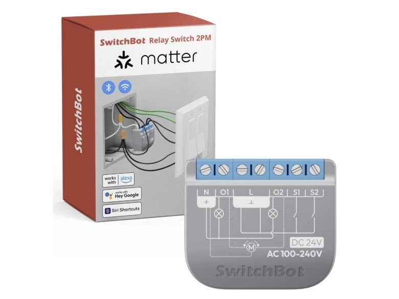 Matter Certification for Seamless Smart Home Integration With Matter certification, you can enable two SwitchBot Bluetooth devices to support Matter by connecting them to the SwitchBot Relay Switch 1PM. This allows you to control them directly through platforms like Apple Home, Alexa, Google Home, and SmartThings all from a single app. Boost Your Smart Home Network Built in Bluetooth Repeater connects up to 10 SwitchBot Bluetooth devices and extends your Bluetooth range up to 262 ft in open spaces, ensuring strong connections across your home. Transform Your Home Instantly Make regular lights and appliances smart in just 10 minutes no rewiring needed Perfect for double-opening wall lights, roller blinds, blinds, sunshades and electric swimming pool covers, as well as two-way AC motors, etc. Two independent circuits can be controlled using a Relay Switch, accurately monitor power and power, and generate charts. Voice Save the hassle of walking before going to bed, and you can turn off the bedroom lights and curtains by opening your mouth. Delay and timing: According to daily routine, accurately control the opening and closing ratio of curtains, so that the light of the curtains in the morning is just right. Scenario When you go home at night, turn on the lights and turn off the curtains automatically to protect your privacy and security. Contact Sensor, Motion Sensors. Automatically close curtains at noon to protect the floor and plants from exposure to the sun Meter Pro+Remote.