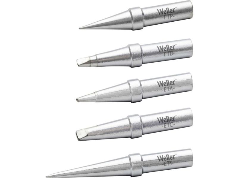 Original Weller et ekstra pakke med 5 loddespidser. Den originale Weller ETA Weller ETA-loddespidser er udviklet til brug af WEP70 loddekolben. Denne arbejder med den professionelle loddestation WE1010, der klarer loddeopgaver yderst effektivt og præcist.