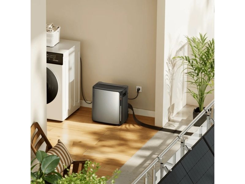 With a noise level of less than 30 dB, the device will not disturb your daily life. You can easily set it up in the living room or bedroom! In addition, its housing is made of materials with a reduced carbon footprint, making it environmentally friendly. Then there's the quick plug-and-play installation and the separately available interchangeable front panels in two colors (natural wood and elegant black), which allow you to match the energy storage to your interior design.