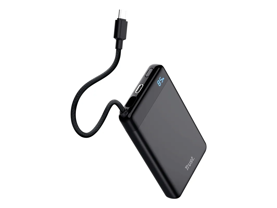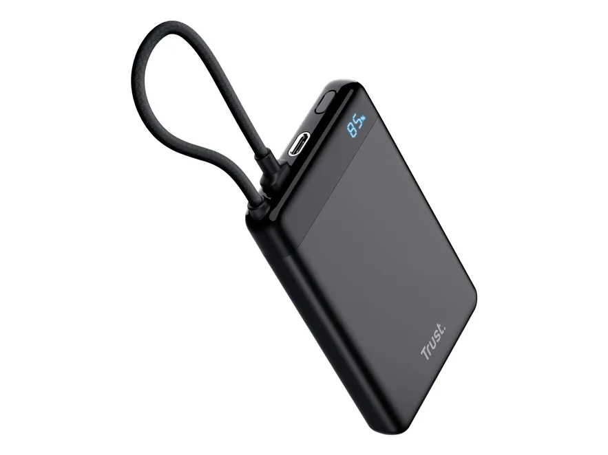 TRUST Powerbank Fiera, 10000 mAh, med kabel, 2x USB-C, svart