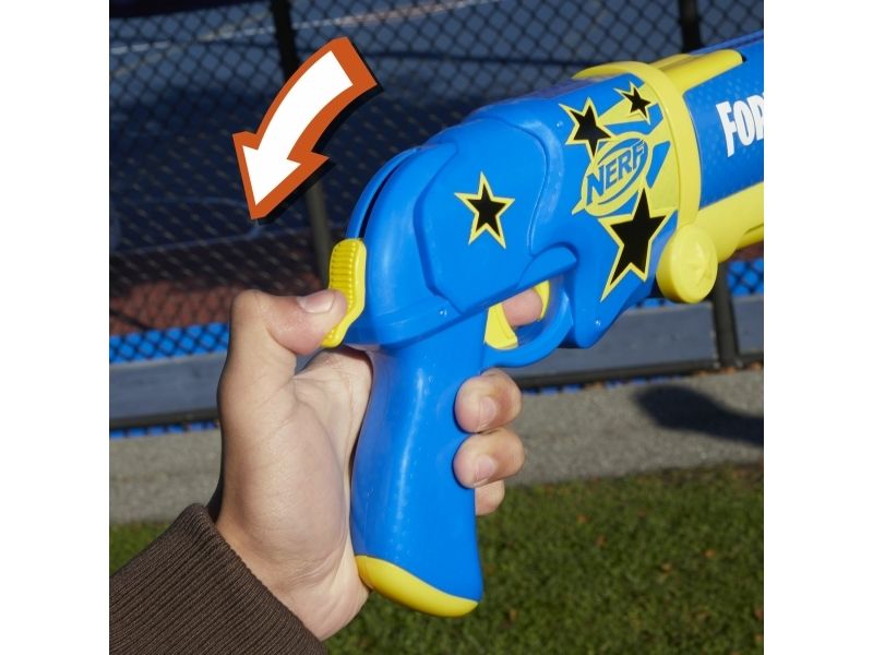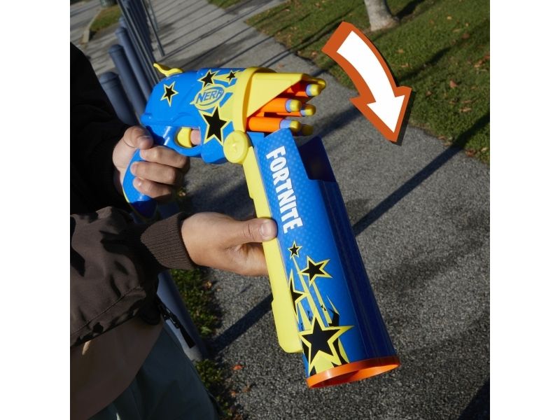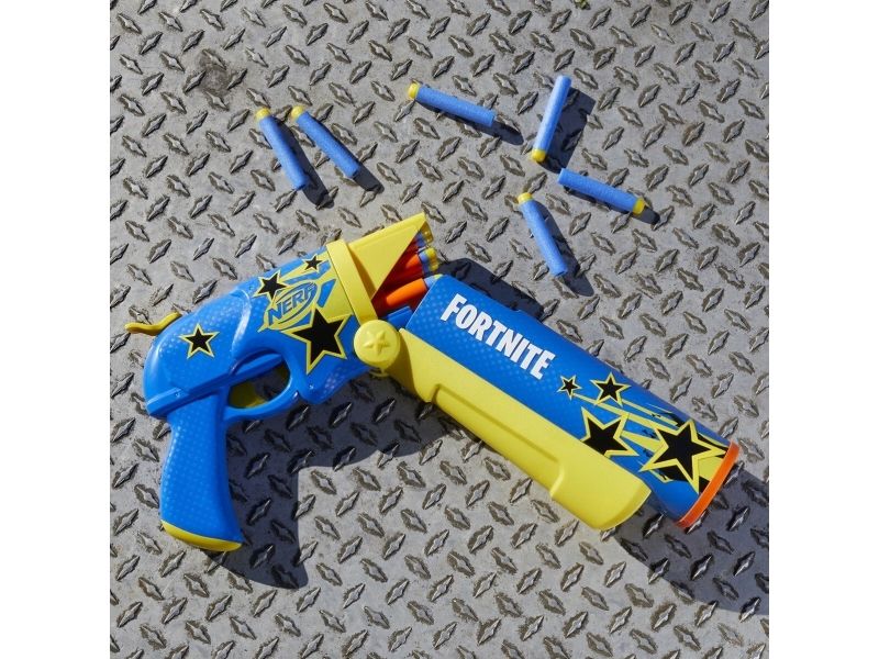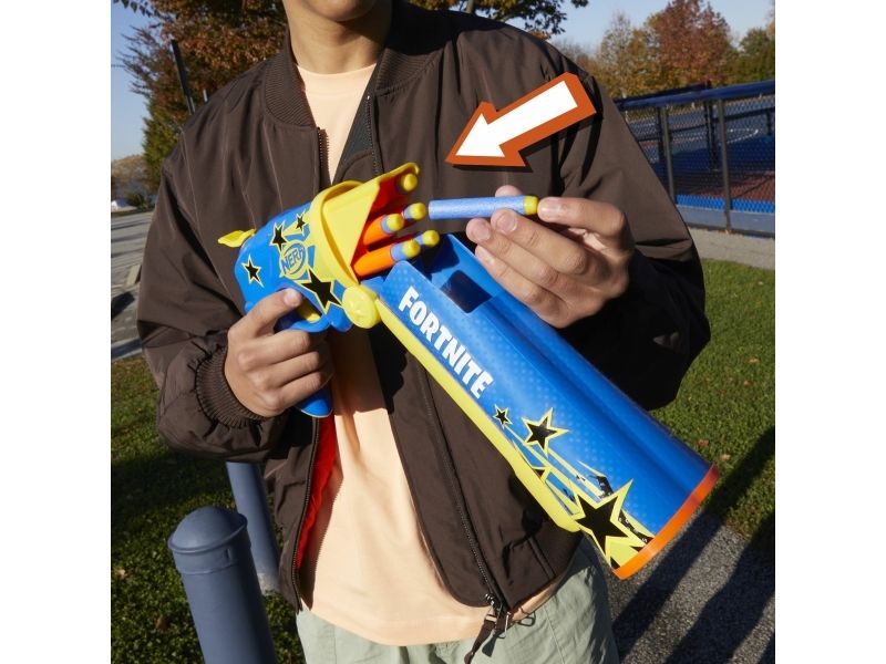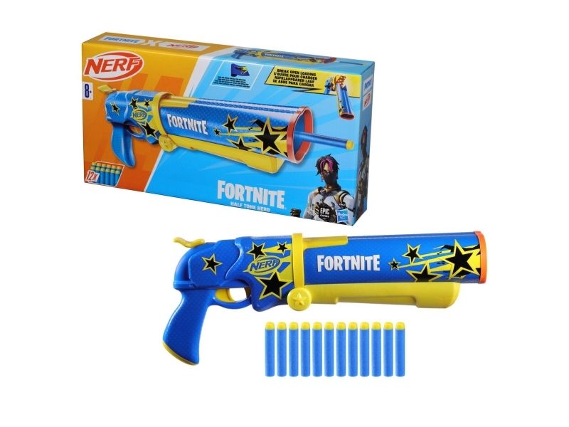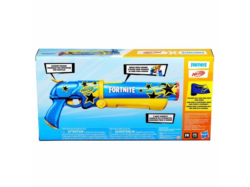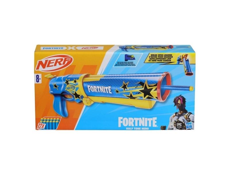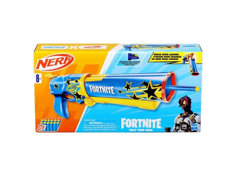 Nerf Fortnite Half Tone Hero-blaster er inspirert av utstyret som brukes i Fortnite, og leveres i Half Tone Hero Wrap fra det populære videospillet. Den inkluderer en bonuskode for å løse ut en Half Tone Hero Wrap i spillet.* Nerf-blasteren lades med et løp som kan brekkes opp – en stilig måte å gjøre det på. Den har kapasitet til 6 darter og inneholder 12 offisielle Elite Nerf-skumdarter, noe som gir deg ekstra darter for flere ladinger. Den har en stilig funksjon der du spenner hanen. Hasbro Fortnite-blaster har en tøff funksjon der du brekker opp løpet for å lade og en fargerik Wrap, så du fanger uten tvil motstanderes oppmerksomhet med den i Nerf-kampens hete. Nerf-skumdarter er perfekte for innendørs og utendørs kamper og er testet og godkjent for ytelse og kvalitet. Half Tone Hero-blasteren er en flott gave for Fortnite-fans og et flott tillegg i en Nerf-samling for lek og utstilling. Briller anbefales (ikke inkludert). Trenger ingen batterier. Fortnite-merker og opphavsrett 2024 Epic Games, Inc. Hasbro og alle tilknyttede begreper er varemerker som tilhører Hasbro.