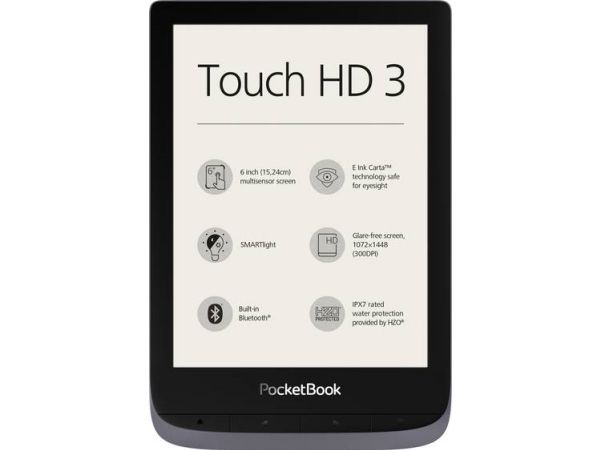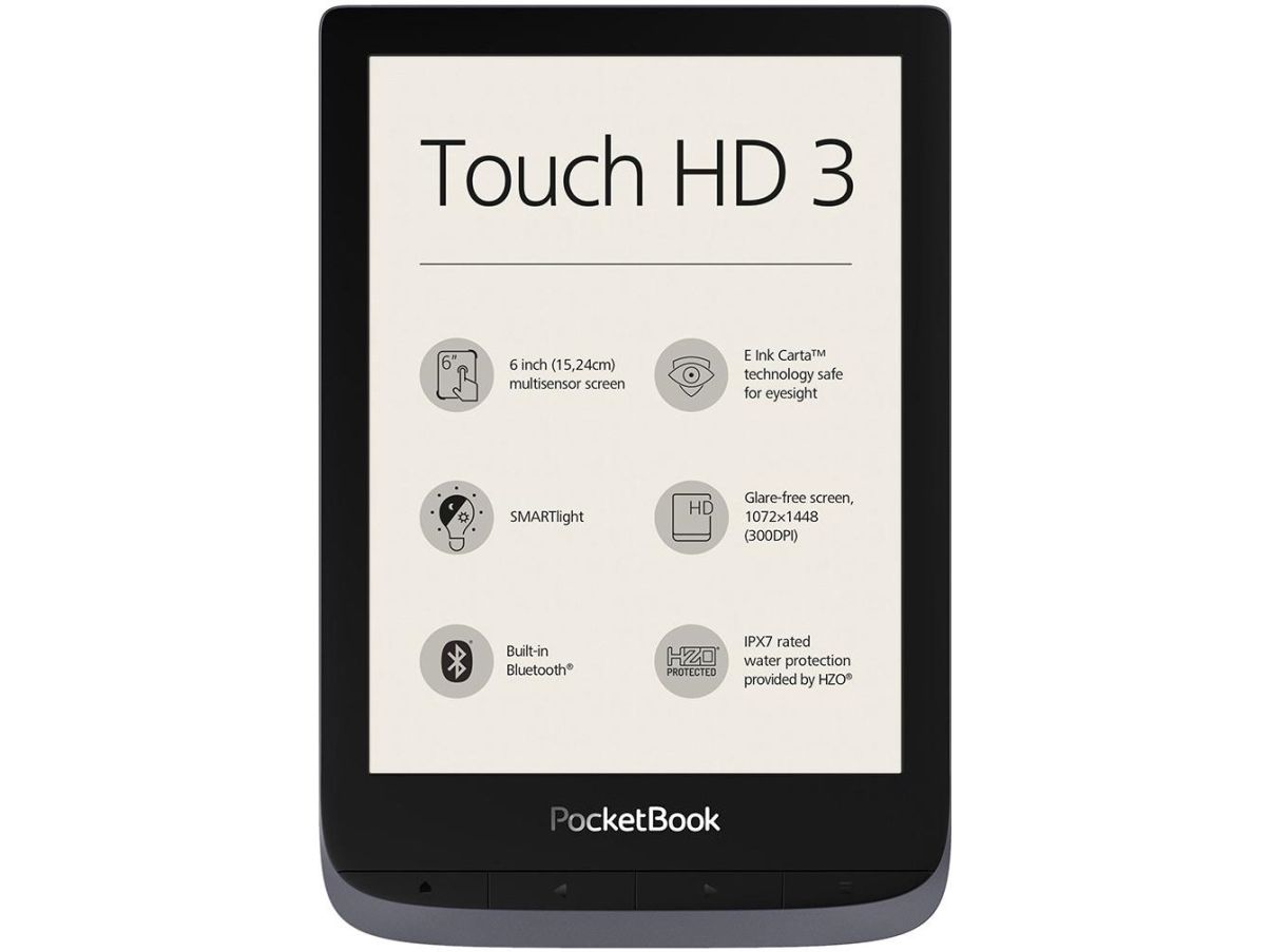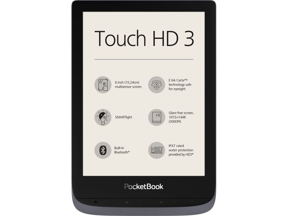 [OUTLET] - PocketBook Touch HD 3 - eBook læser - 16 GB - 6" monokrom E Ink Carta (1072 x 1448) - touch screen - Bluetooth, Wi-Fi - metalgrå