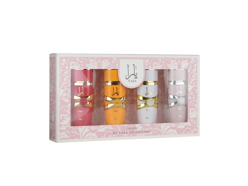 | Hver duft forteller sin egen historie: Yara – myk, feminin og grasiøs, med delikate blomsternoter. Yara Candy – leken og søt, inspirert av ungdommelige gourmand-akkorder. Yara Tous – lys, frisk og livlig, perfekt til hverdagsbruk. Yara Moi – varm, rik og intim, ideell for kvelder og spesielle øyeblikk. |