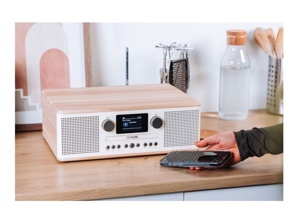 Pure Classic C-D6 er et sofistikert lydsystem som kombinerer moderne teknologi med klassisk design for å levere en lytteopplevelse av høy kvalitet. Med Bluetooth 5.3-kompatibilitet tilbyr det sømløs trådløs strømming fra favorittenhetene dine. Systemet har en total utgangseffekt på 30 watt, noe som sikrer at musikken, lydbøkene og sendingene dine blir hørt med klar og fyldig lyd.
