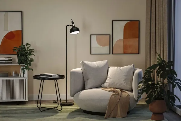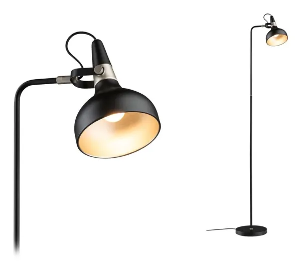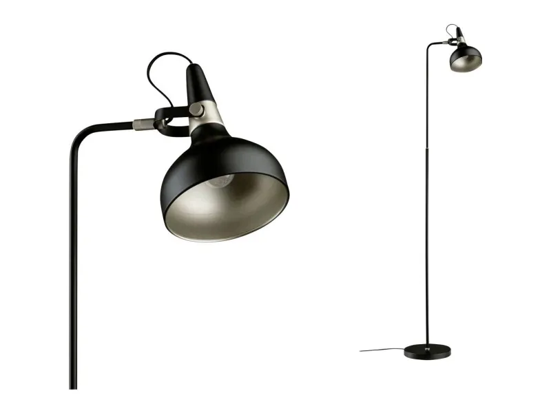 Standerlampe Juna E14 maks. 20W sort mat#champagnefarvet metal Med sit tidsløse og samtidig moderne form- og designsprog passer Lamaserien Juna i vidt forskellige indretningsstile og skaber attraktive lyseffekter i hjemmet. Efter behag kan bords- og pendullamperne fra serien kombineres harmonisk med hinanden. Den sort matte standerlampe med æstetiske farveaccenter i champagnergold kan anvendes til mange formål og egner sig ideal for belysning ved siden af sengen, til hyggelige læsetunder eller ved siden af sofaen i boligen. Den er fremstillet i høj kvalitet og giver ikke kun et tiltalende udseende, men også en lang levetid. Det bevægelige lampehoved giver mulighed for en fleksibel justering af lyset, mens det farveafstemte tekstilkabel sikrer en bekvem og sikker anvendelse. Som anbefaling af lysmiddel egner dekorative hovedspejllamper med en E14-sokkel sig især til et blændfrit lys.