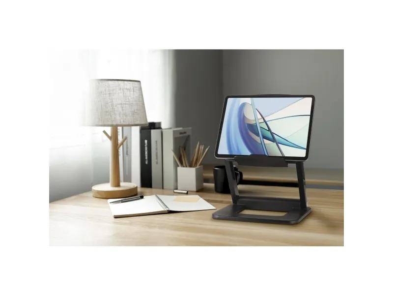 The Kensington SmartFit EQ Notebook Stand offers a versatile solution for comfort and productivity. Designed with adjustable height and multi-angle features, this laptop stand allows users to optimize their viewing angle for ergonomics. Constructed from durable materials including nickel-plated steel, thermoplastic elastomer, and acrylonitrile butadiene styrene, it effectively supports laptops ranging from 13 inches to 16 inches. With the added benefit of an anti-slip silicone pad and locking latch, it provides a stable platform for your device while accommodating a maximum load weight of 3 kg.