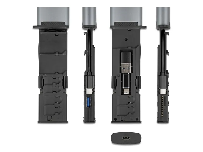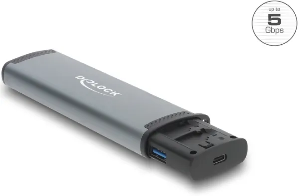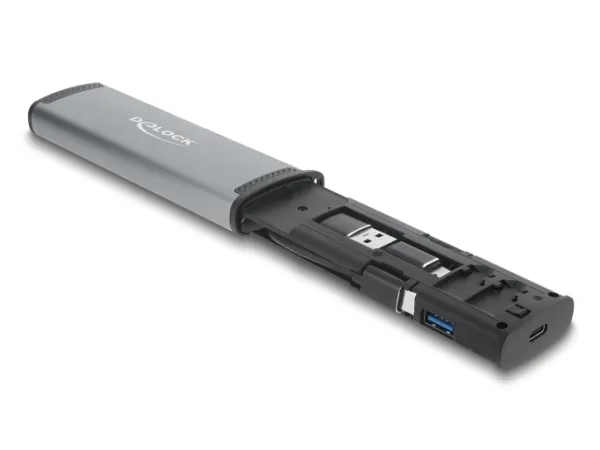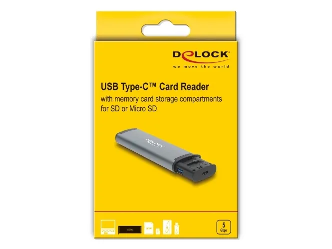 The Delock memory adapter is designed to simplify managing and transferring data from various memory cards. It offers dual interfaces, USB and USB-C, ensuring compatibility with a range of devices. Supporting SD memory cards, microSD, and Nano SIM cards, this versatile card reader is a practical solution for accessing multiple types of stored data. The external aluminum housing lends durability and features an LED indicator for status monitoring.