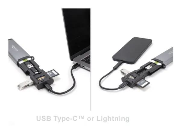 Designed for high efficiency, the adapter utilizes the Genesys Logic GL3224 chipset that enables data transfer speeds of up to 5 Gbps, making large file transfers straightforward. The capability to read/write up to 2 cards simultaneously enhances productivity, while storage for 9 cards ensures that essential data is securely stored. The adapter complies with Plug-and-Play standards, making it easy to set up without requiring additional software, and includes various handy accessories for added convenience.