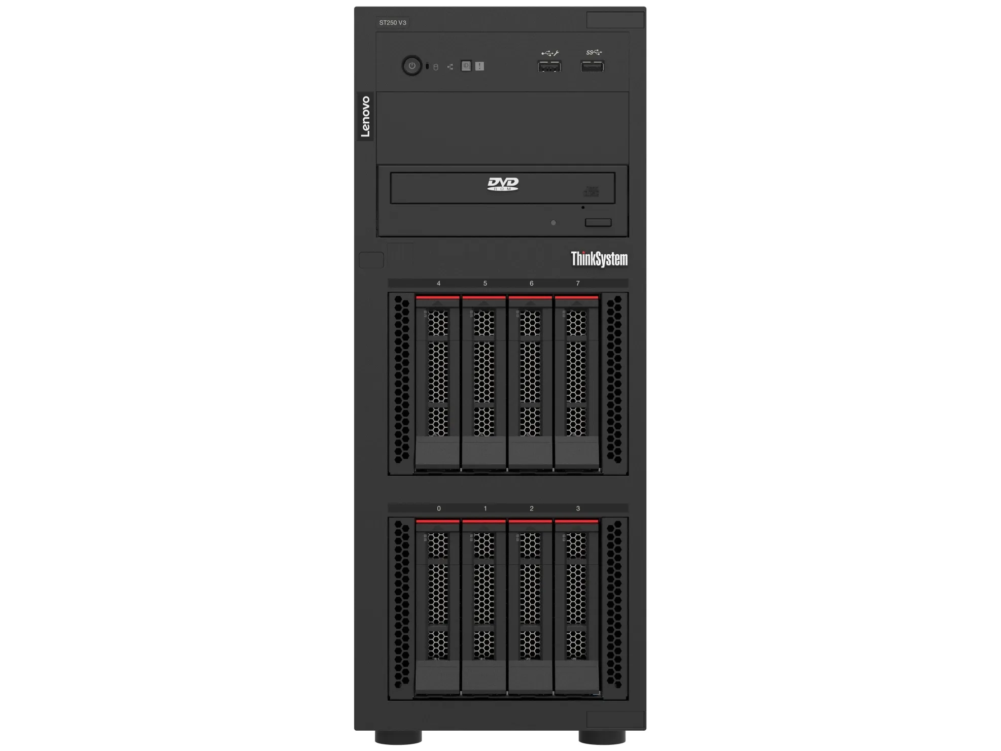 Lenovo ThinkSystem ST250 V3 7DCE - Server - tower 4U - 1-veis - 1 x Xeon 6353P / inntil 5.4 GHz - RAM 16 GB - hot-swap 3.5" brønn(er) - uten HDD - Matrox G200 - Gigabit Ethernet - uten OS - monitor: ingen