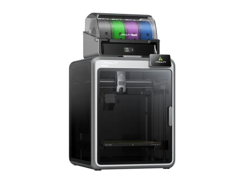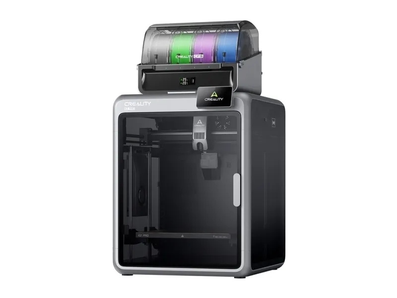 The new CFS (Creality Filament System) module allows printing with several filaments simultaneously. With one unit, the printer supports four colors, and when four are connected, up to 16 colors or materials. The unit provides automatic filament recognition, precise management, auto-addition, moisture protection, as well as real-time temperature and humidity display. As a result, the K2 Pro allows you to create complex, colorful models without interruptions or material waste. Note: you will find one CFS module included. To use more colors and materials, purchase additional units.
