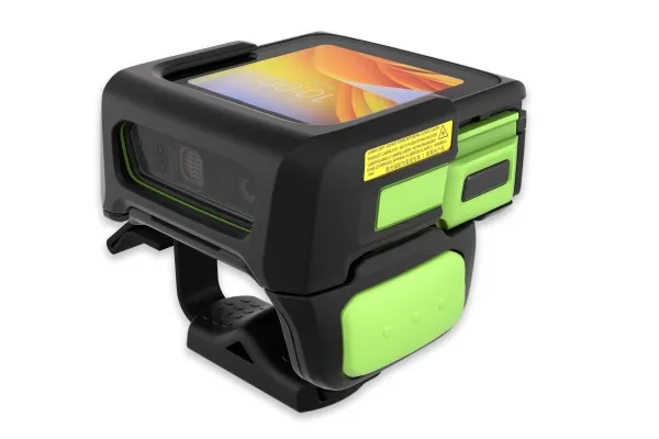Zebra WS501, Finger Mount, 2D, SE4770, USB, Android, RB Mobil datafangstenhet, 2D, imager (SE4770), skjermstørrelse: 5,1 cm (2''), berøringsskjerm, kapasitiv, oppløsning: 460x460 piksler, høyttaler, vibrasjon, tilkobling: USB, Qualcomm Quad Core, 2,0 GHz, RAM: 3 GB, Flash: 32 GB, Android (14), inkl.: oppladbart batteri, 1300 mAh, avtagbart batteri, bestilles separat: nettkabel, nettadapter, IP65 (WS5012-0F3J1020EA6)