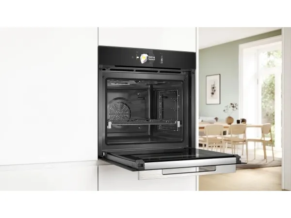 Bosch Serie 8 HBG778NB1. Oven size: Medium, Oven type: Electric, Total oven(s) interior capacity: 71 L. Appliance placement: Built-in, Product colour: Black, Control type: Touch. Clock type: Electronic, Apps supported: Home Connect. Energy efficiency class: A+, Energy consumption (conventional): 0.87 kWh, Energy consumption (forced convection): 0.69 kWh. Lamps quantity: 1 lamp(s), Lamp type: LED
