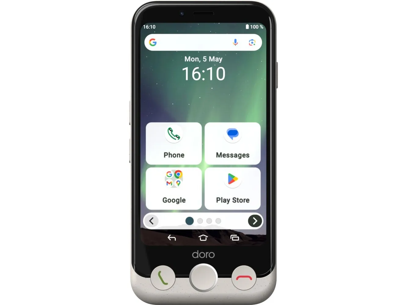 Enjoy a pocket-friendly, easy to use smartphone with tactile buttons, TeamViewer for getting remote support, and the Doro Secure Button for alerting relatives if you need help. A simplified interface with helpful tips makes it easier to organise and understand your favourite apps. Other features include voice control with Google Assistant / Gemini and Doro ClearSound for clearer conversations in noisy environments. Doro Aurora A10. Display diagonal: 11.4 cm (4.5"), Display resolution: 1280 x 720 pixels. Processor frequency: 2 GHz, Processor family: MediaTek, Processor model: MT6769Z. RAM capacity: 4 GB, Internal storage capacity: 64 GB. Rear camera resolution (numeric): 13 MP, Rear camera type: Single camera. SIM card capability: Dual SIM. Operating system installed: Android 14. Battery capacity: 3000 mAh. Product colour: Black, White. Weight: 170.4 g