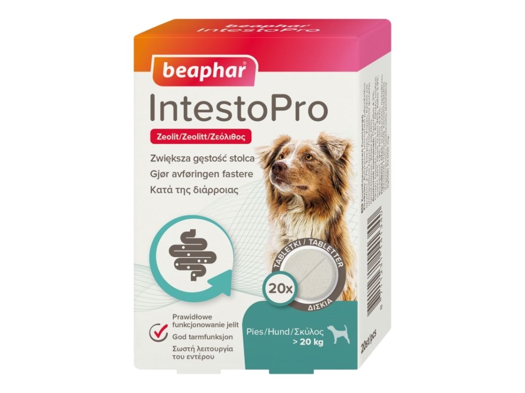 Beaphar IntestoPro, Hund, Tabletter, 20 stykker, Zeolitt, Boks