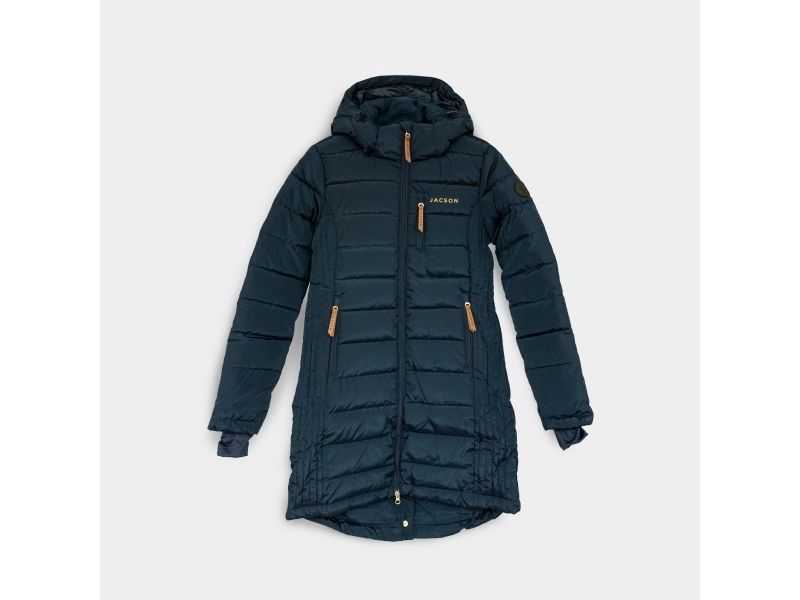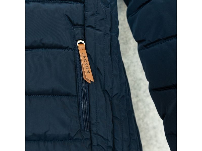 Knälång figursydd kappa med en stilren design som passar både i stallet och på stan. Kappan är utrustad med en dunliknande syntetfyllning, lycramuddar vid ärmslut och BIONIC-FINISH® ECO impregnering vilket gör att du håller dig varm under både höst, vinter och vår. På juniormodellen är det avtagbar huva med knappar. Passformen, tvåvägsdragkedjan och det öppningsbara sprundet gör dig flexibel både i stallet och i sadeln. Kappan är också utrustad med tre dragkedjeförsedda fickor,  reflekterande detaljer och elastiska benremmar.