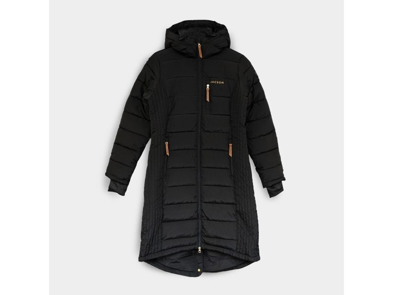 Knälång figursydd kappa med en stilren design som passar både i stallet och på stan. Kappan är utrustad med en dunliknande syntetfyllning, lycramuddar vid ärmslut och BIONIC-FINISH® ECO impregnering vilket gör att du håller dig varm under både höst, vinter och vår. Passformen, tvåvägsdragkedjan och det öppningsbara sprundet säkerställer att du inte blir hindrad i dina rörelser. Därtill har den även elastiska benremmar med förstärkta fästen som håller fast kappan när du rider. Kappan är också utrustad med tre dragkedjeförsedda fickor samt reflekterande detaljer. Molly är vår uppdaterade variant på den tidigare storsäljaren Mary. Maskintvätt 40 grader. Torktumla i låg temperatur med tennisbollar.