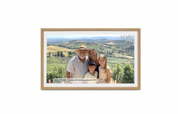 Smarte funktioner: Personaliser dit diasshow! Tilføj billedunderskrivning, indstil rotationsinterval og brug den automatiske slukkefunktion til natten.
