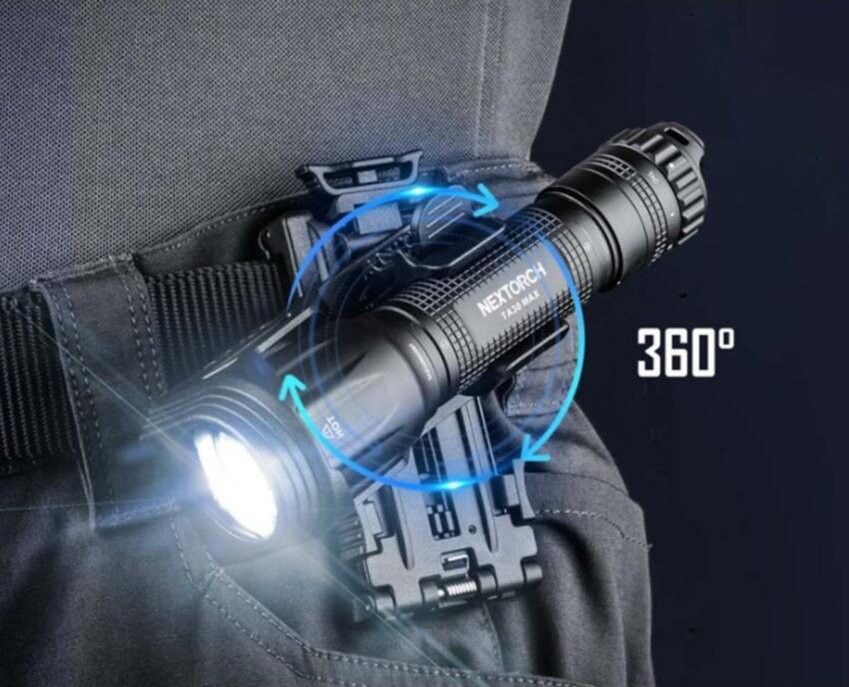 Smart lommelygte holder med aftagelig bælteklemme op til 55mm i bredde. 360 grader rotation med 16 låsepositioner, det er altid muligt at finde den rigtige vinkel, herunder en lygte stander, således lygten forvandles til en arbejdslygte. Passer til lygte