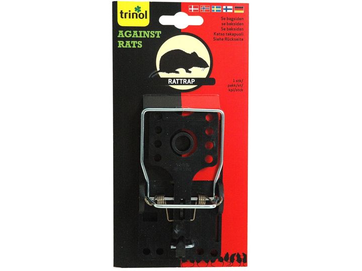 1 stk. kraftig rottefælde med indbygget foderskål. Fælden leveres i salgsvenlig emballage med hanger.