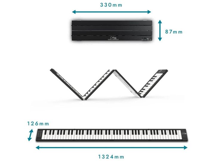 Det er enkelt å bruke og det er bare å plugge og spille til en datamaskin, en mikser, en forsterker eller hodetelefonene dine. Med Carry-on-pianoet kan du spille hvor som helst når som helst.