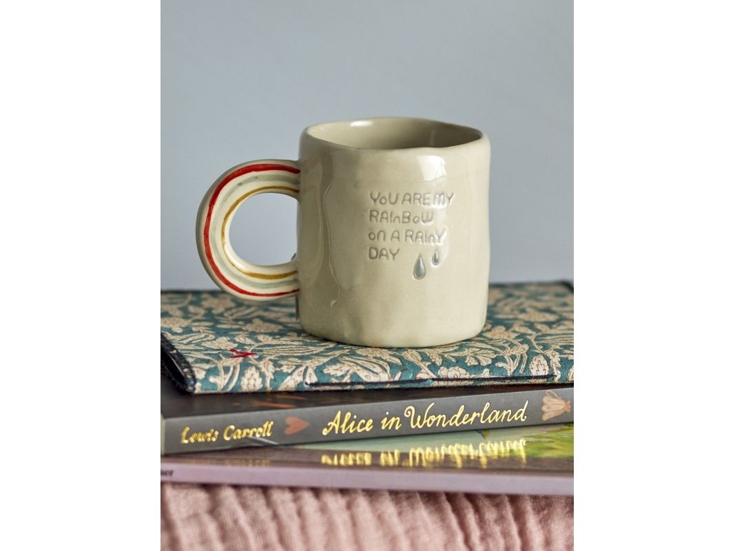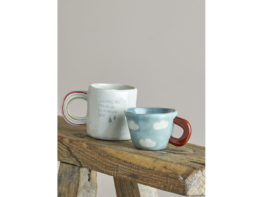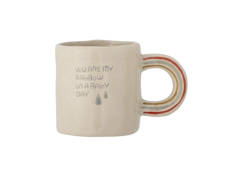 Cloudy Koppen fra Bloomingville MINI er en fin og charmerende kop med teksten "You are my rainbow on a rainy day" samt en regnbue som håndtag. Koppen vil uden tvivl sprede glæde og varme i hverdagen, og den er perfekt til en hyggelig kop te eller kaffe. Koppen kommer i en flot gaveæske af finer med et sødt print, der matcher koppen, hvilket gør den til en perfekt gaveidé.