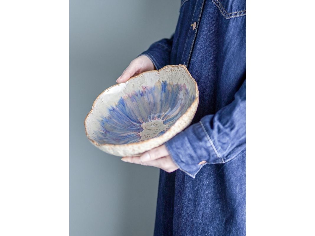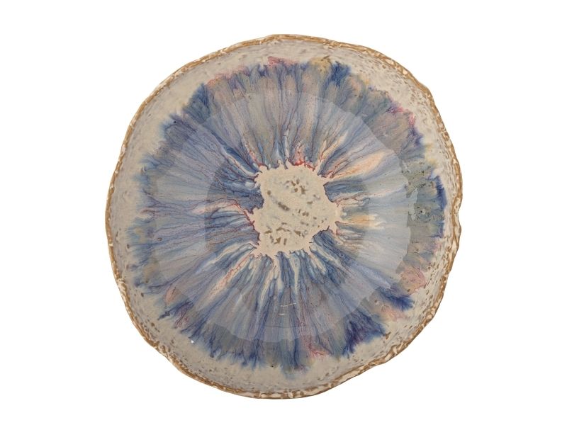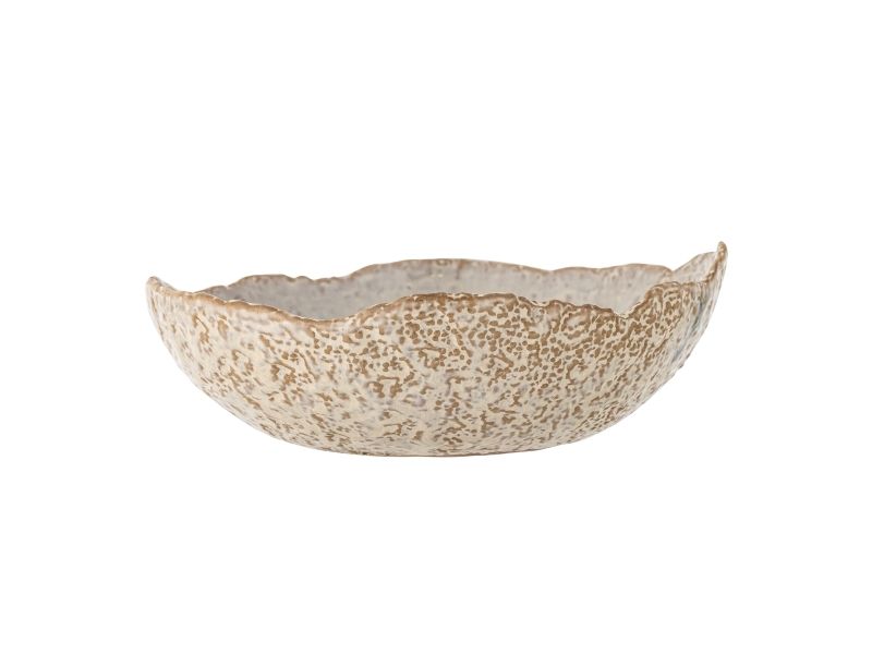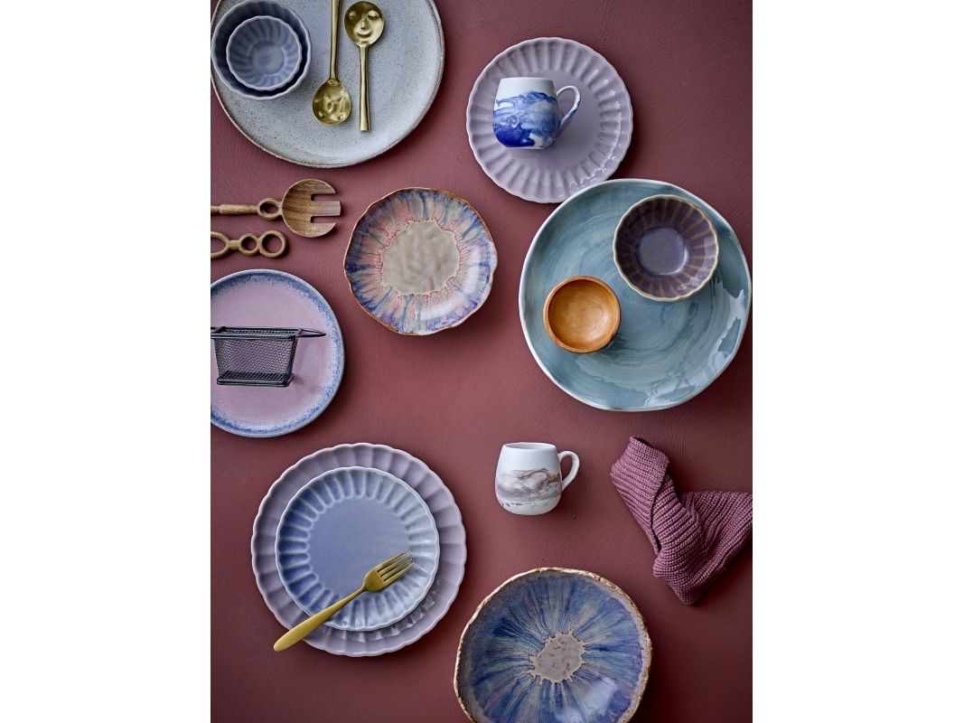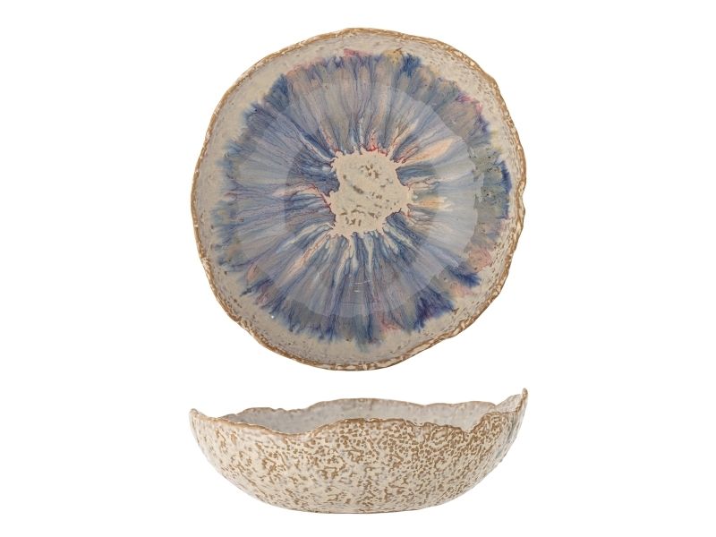 Amalia Skålen fra Bloomingville præsenterer et blidt farvespil mellem beige, lilla og blå nuancer der smukt blander sig i en akvarel-lignende palet. Skålen har en kurvet form og en glansfuld overflade, hvilket gør den ideel som en del af middagsbordet. De rustikke kanter tilføjer karakter og fremhæver skålens unikke udtryk. Glasuren kan medføre variationer i farven.