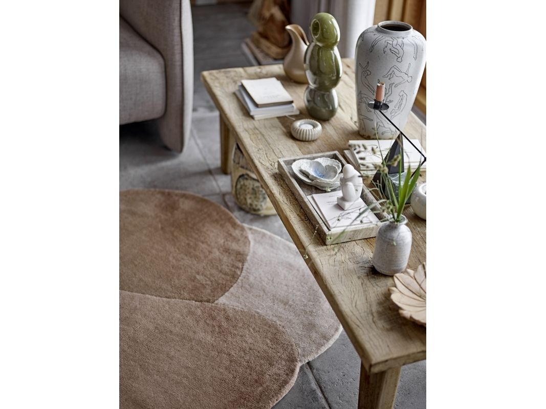 Denton Tæppet fra Bloomingville tilføjer en harmonisk og varm følelse til ethvert rum med sine organiske runde former samt beige og brune farver. Det smukke gulvtæppe er lavet af uld.