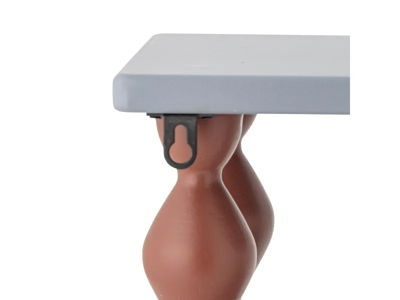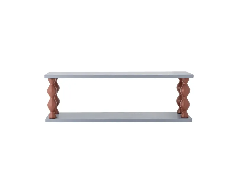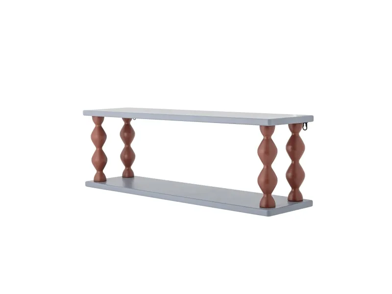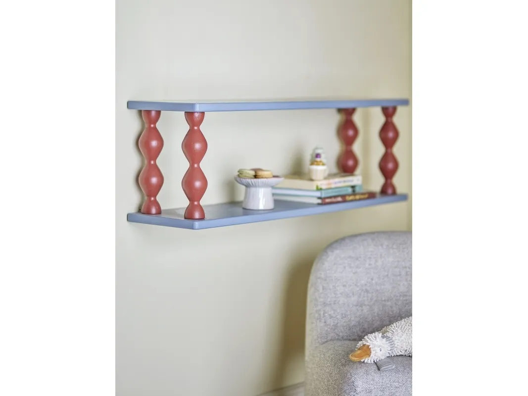Bibiola Hylden fra Bloomingville MINI er lavet af MDF med blå hylder og drejede brune ben. Den skulpturelle form og farverige kontrast giver et legende og dekorativt udtryk til børneværelset.
