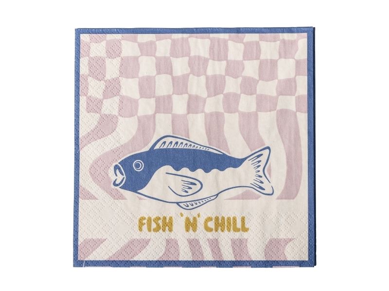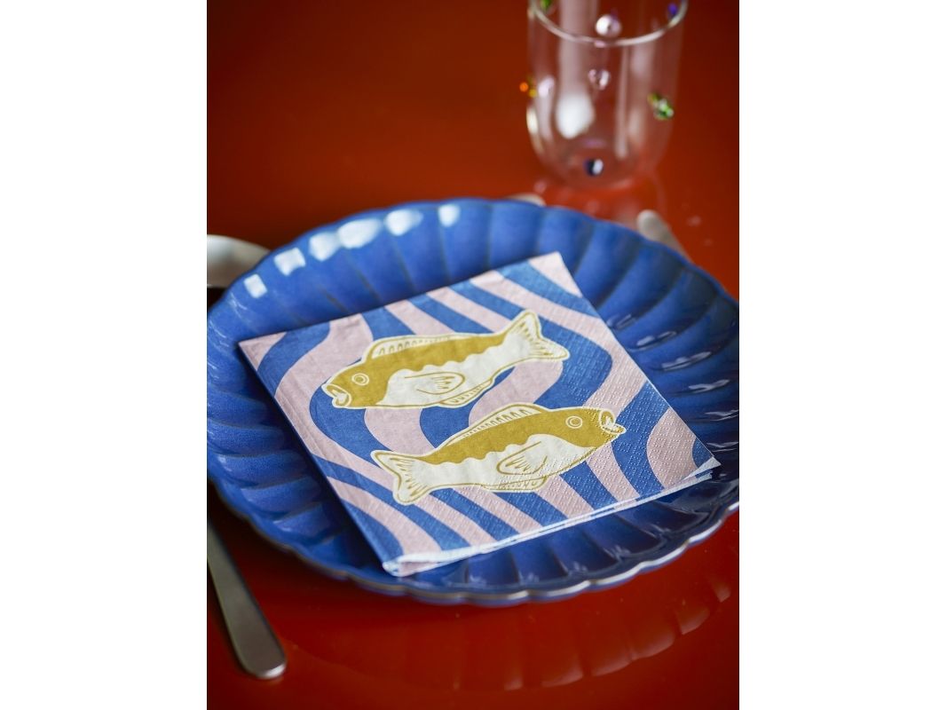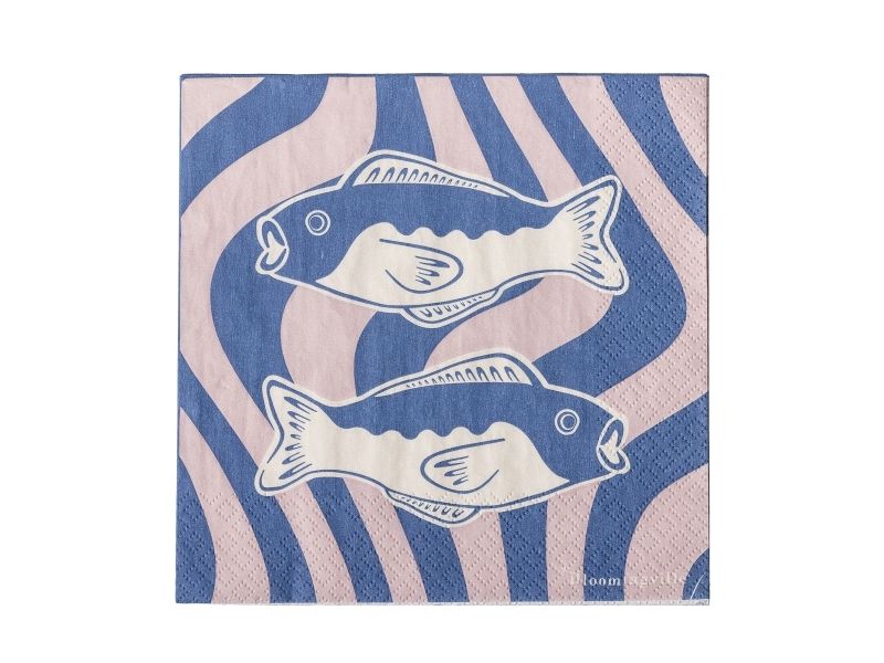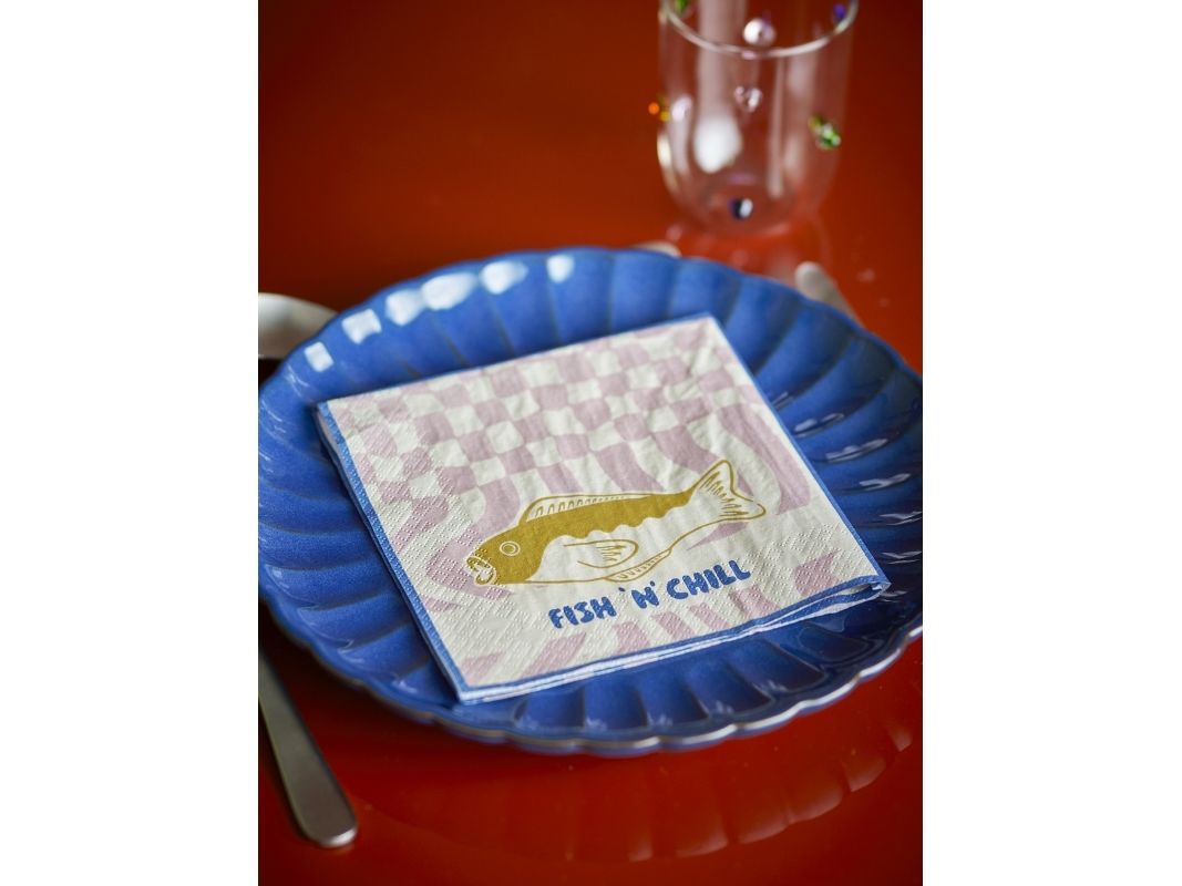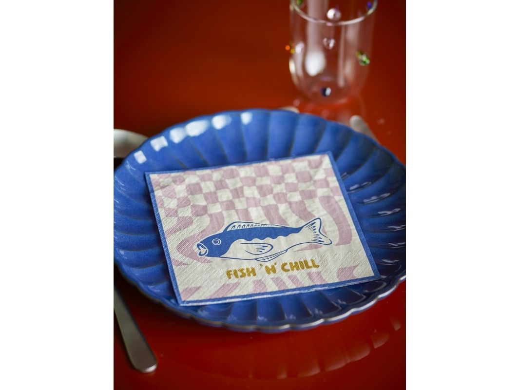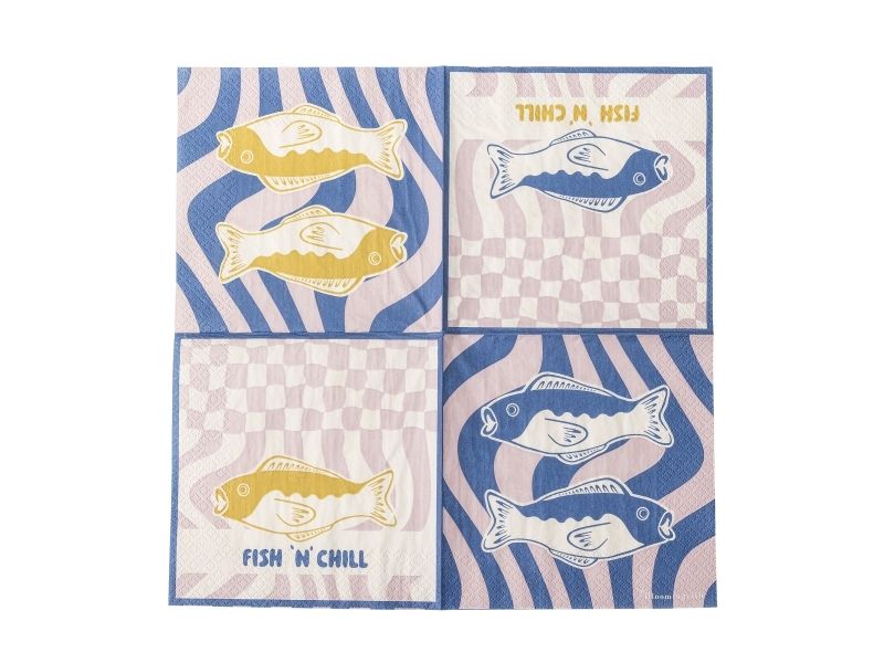 Remy Servietten fra Bloomingville er fremstillet i FSC-certificeret papir med grafiske fiskemotiver og tekst. De livlige farver og det kreative design gør dem perfekte til enhver borddækning. Pakke af 20 stk.