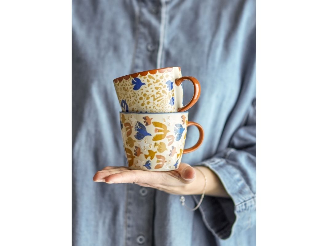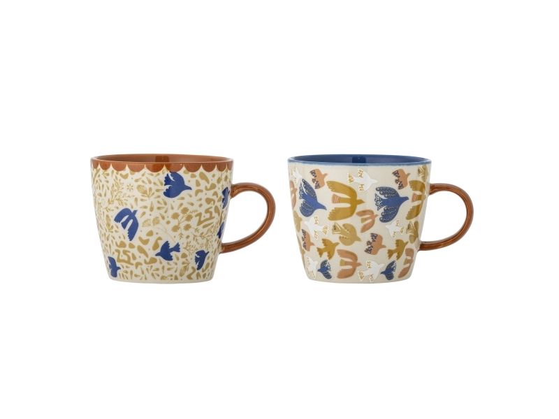 Anniversary Koppen fra Bloomingville kommer som et sæt af to og er lavet af stentøj med et trykt, grafisk motiv i varme nuancer. Den afrundede form giver et roligt og dekorativt udtryk – perfekt til både kaffe og te.