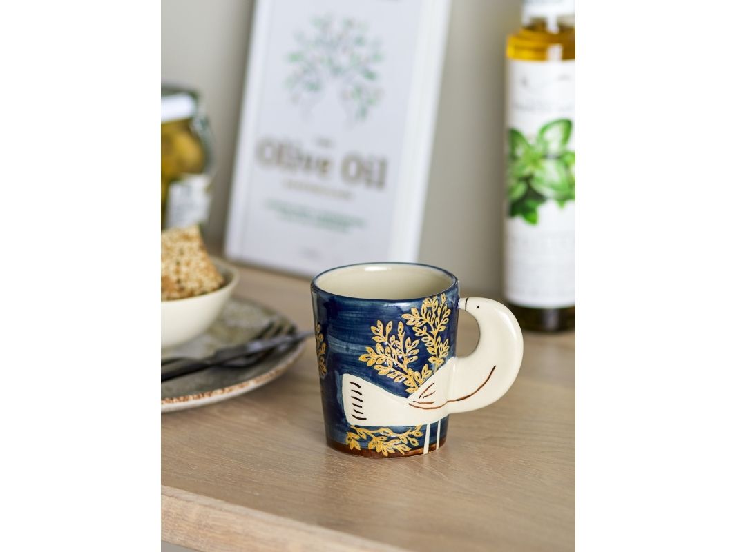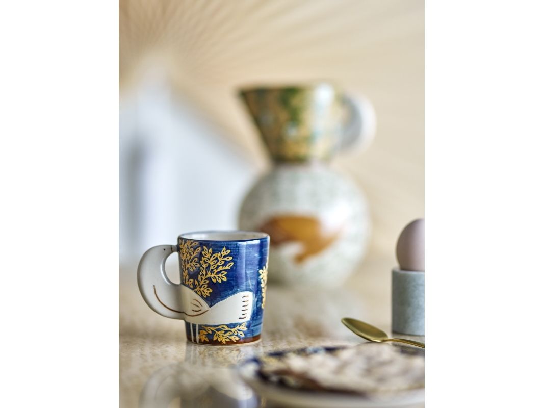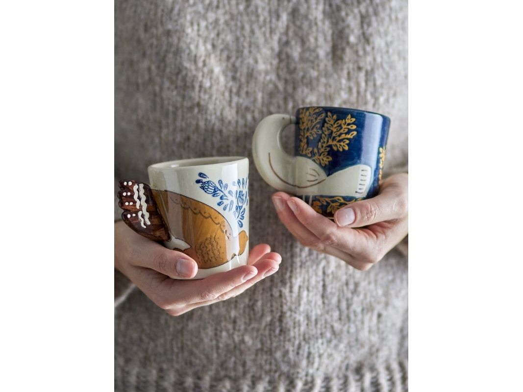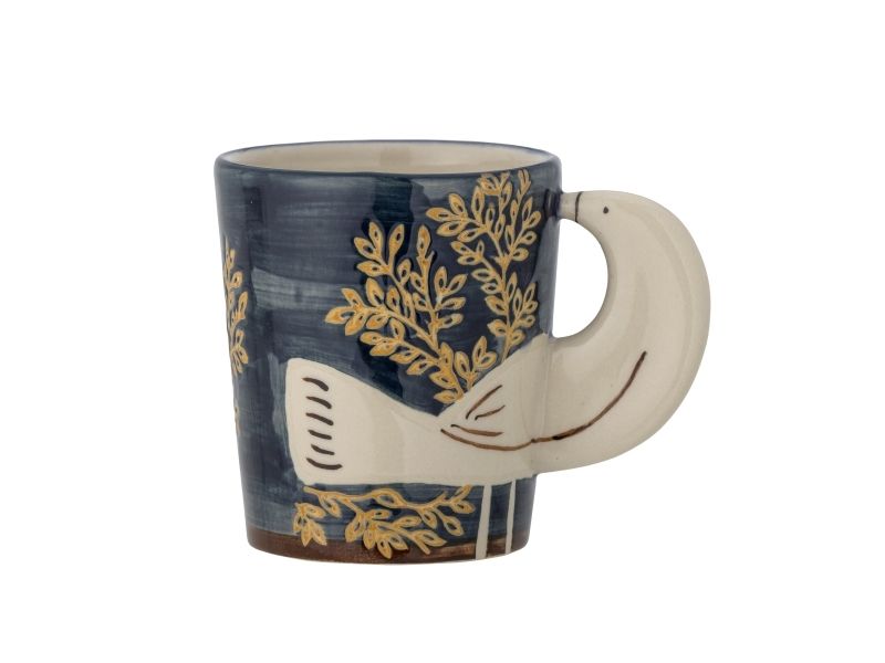 Hezha Koppen fra Bloomingville er lavet i stentøj og har et smukt og unikt fuglemotiv med 3D-effekt, hvor fuglen fungerer som hank. Brug den til din morgenkaffe eller som en dekorativ del af dit hjem. Hver kop vil være unik, da hvert penselstrøg tilføjer et personligt præg og skaber en unik variation i designet.