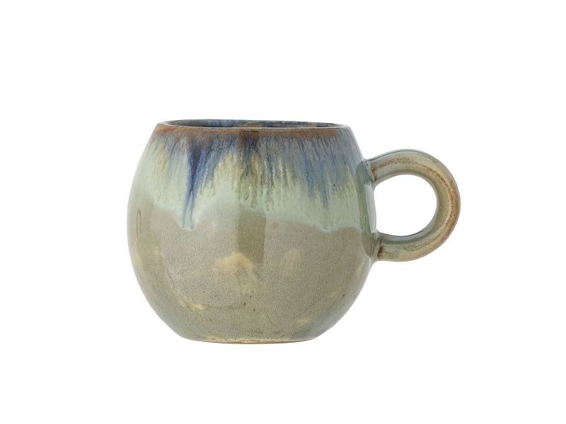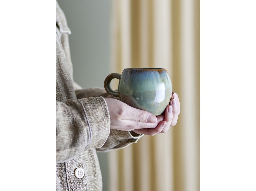 Paula Koppen fra Bloomingville danner et smukt farvespil med sin glasur i brune, blå og grønne nuancer. Glasurens natur kan medføre variationer i farven, hvilket gør hver kop unik.