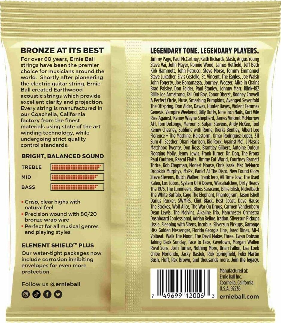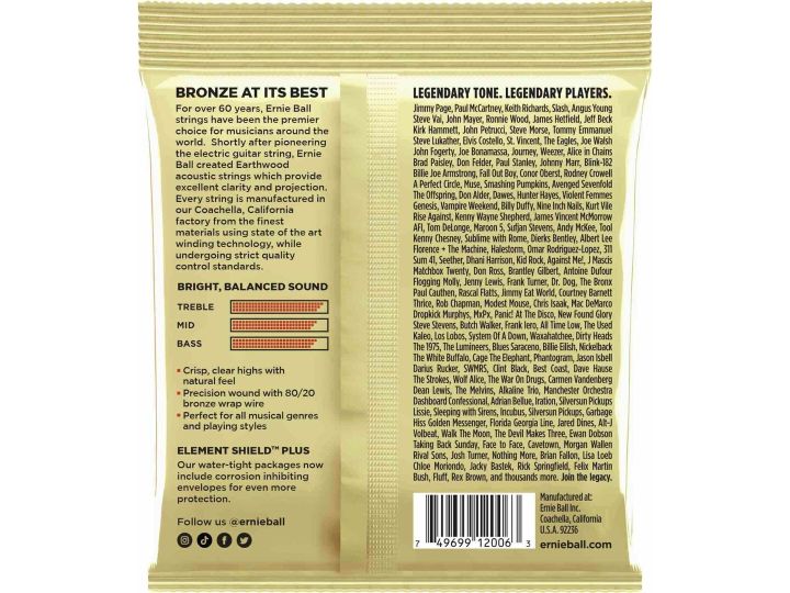 Ernie Ball 2006 Earthwood Bronze 80/20 Light, Stål Strenge til Akustisk Guitar