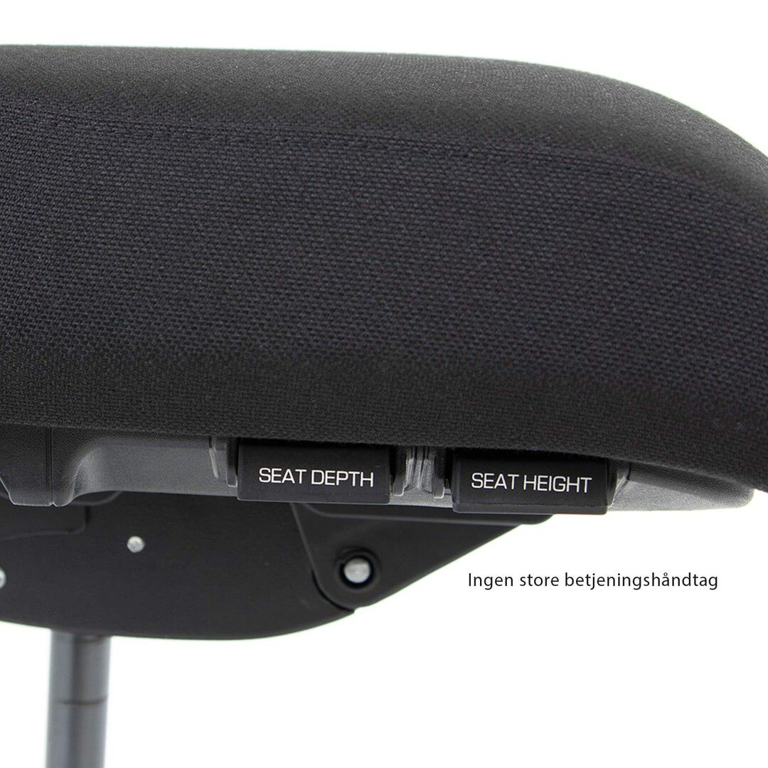 Ergonomi og smart design For at give Comfort Air et mere enkelt udtryk, er store betjeningshåndtag erstattet med mindre, nemt tilgængelige lige under polstringen. Denne model har en høj netryg, højdejustering, låsbart synkronvip med vægtjustering, sædedybderegulering samt justering af ryghøjden. Det sorte metalfodkryds tilfører ekstra elegance.