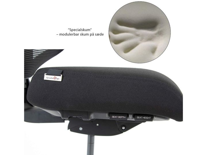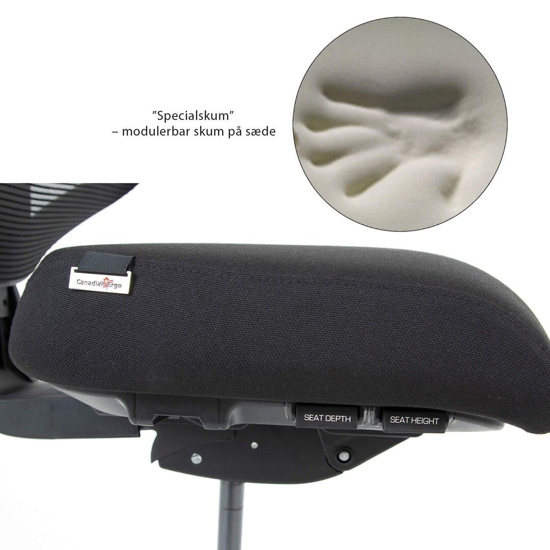 Canadian Ergo Comfort Air er en kontorstol med ekstra god siddekomfort grundet sædet i special-skum. Netryggen ventilerer så man ikke bliver varm på ryggen. Sædet aflaster bagdelen og baglåret, så man kan sidde længe ad gangen. Desuden muliggør det en fremadrettet siddestilling (i stil med funktionen sædetilt)
