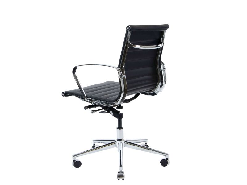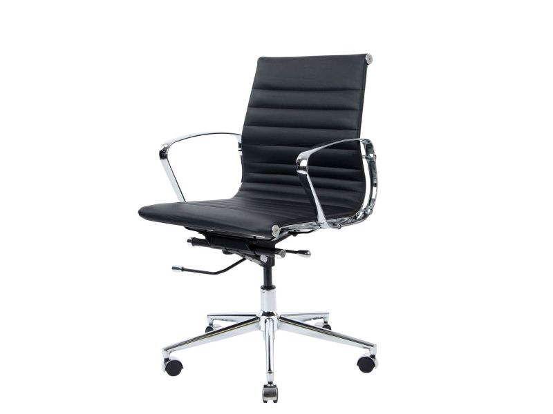 Læderstol med blanke detaljer Wye, med lav ryg, er en multifunktionel stol, der både er velegnet som kontorstol og som mødestol. Ekstra flot i ægte læder med dekorative syninger. Wye har højdejustering samt vip i sæde og ryg. Med flotte runde blanke armlæn og blankt fodkryds. Her med almindelig ryghøjde.