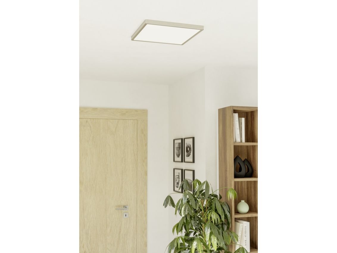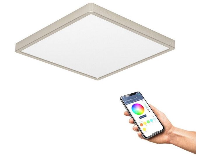 Med sin kvadratiske form og elegante mat-nikkeloverflade tilbyder FUEVA 6-Z loftslampen en førsteklasses lysløsning til moderne boligarealer. Den store, satinmatte diffusor sikrer en jævn og blændfri belysning. Den integrerede RGB+CCT-teknologi muliggør både farverige lysscener og trinløs justering af hvidt lys i forskellige farvetemperaturer – tilpasset enhver tid på dagen og stemning. Via Connect.Z Smart Home-systemet kan lampen nemt styres med app, separat tilgængelig fjernbetjening eller vægkontakt, og den er desuden kompatibel med almindelige stemmeassistenter. Med sine mål på 390 × 390 mm er lampen særligt velegnet til større rum som stuer, åbne køkkener eller kontorer med høje krav til design og funktion.