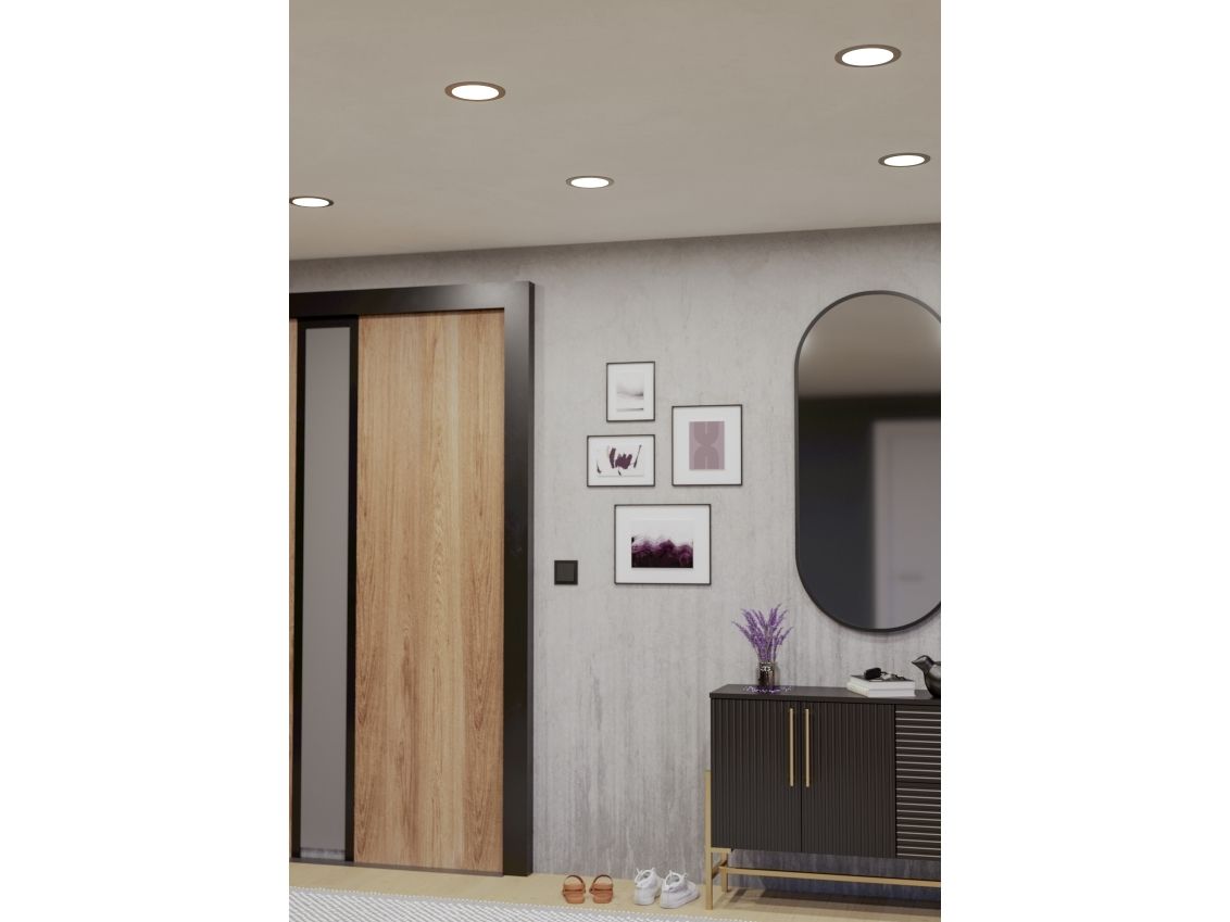Med sit runde hus i et elegant nikkelmat look og satinbehandlet diffusor tilbyder FUEVA 6-Z indbygningsarmaturet ikke kun stilfuldt design, men også maksimal lysfleksibilitet. Indbygget RGB+CCT-teknologi giver mulighed for trinløs justering af hvidt lys (varm hvid til kold hvid) samt et udvalg af levende farver til stemningsbelysning. Som en del af Connect.Z Smart Home System kan armaturet styres via app, separat tilgængelig fjernbetjening eller vægkontakt. Stemmestyring med kompatible assistenter er også mulig. Med sin diameter på 166 mm er armaturet ideelt til opholdsrum, entréer eller køkkener, hvor der kræves både funktionalitet og design.