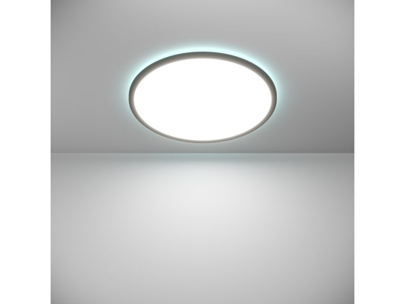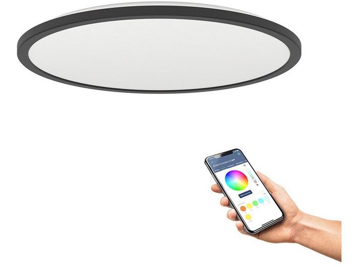LED-loftlampen ROVITO-Z fra Smart Home-serien connect.z er fremstillet med et sort plastikhus og en hvid plastikskærm. Loftlampen har en diameter på 50 cm og en højde på kun 3 cm, hvilket gør den perfekt til enhver moderne indretning. De integrerede LED’er afgiver behageligt lys efter dine ønsker. Du kan vælge mellem varmt hvidt, neutralt hvidt og koldt hvidt lys samt en række RGB-lysfarver. Det øverste lys på lampen tilbyder individuelle RGB-indstillinger til indirekte belysning, mens det nederste lys kan indstilles fra varmt hvidt til koldt hvidt. Både det direkte og det indirekte lys kan tændes, slukkes og dæmpes separat. Loftlampen styres via en gratis app (AwoX Home Control), som giver dig adgang til yderligere komfortfunktioner som dæmpning, timer, tilstedeværelsessimulering og meget mere. Lampen styres via Bluetooth samt ZigBee 3.0 og kan også betjenes med kompatible stemmeassistenter. Derudover kan den smarte loftslampe også styres med den separat tilgængelige fjernbetjening. ROVITO-Z LED-loftslampen fra connect.z smart home-serien udmærker sig ved sit minimalistiske design. Med en længde og bredde på 29 cm hver og en højde på kun 3 cm passer den kantede loftslampe perfekt ind i ethvert moderne boligkoncept. Både huset og skærmen er lavet af hvid plast, hvilket sikrer en jævn og blændfri lysfordeling. De integrerede LED'er giver dig fleksible belysningsmuligheder: Vælg mellem varmt hvidt, neutralt hvidt eller koldt hvidt lys samt en række RGB-lysfarver. Det øverste lys på dette lys tilbyder individuelle RGB-indstillinger til indirekte belysning, mens det nederste lys kan justeres fra varm hvid til kold hvid. Både direkte og indirekte lys kan tændes og slukkes separat og dæmpes. Armaturet styres via den gratis app (AwoX Home Control), som muliggør adskillige komfortfunktioner såsom dæmpning, timer og tilstedeværelsessimulering. Takket være Bluetooth og ZigBee 3.0 kan lyset også styres via kompatible stemmeassistenter som Amazon Alexa eller Google Assistant. Derudover er det muligt at styre via en separat tilgængelig fjernbetjening.