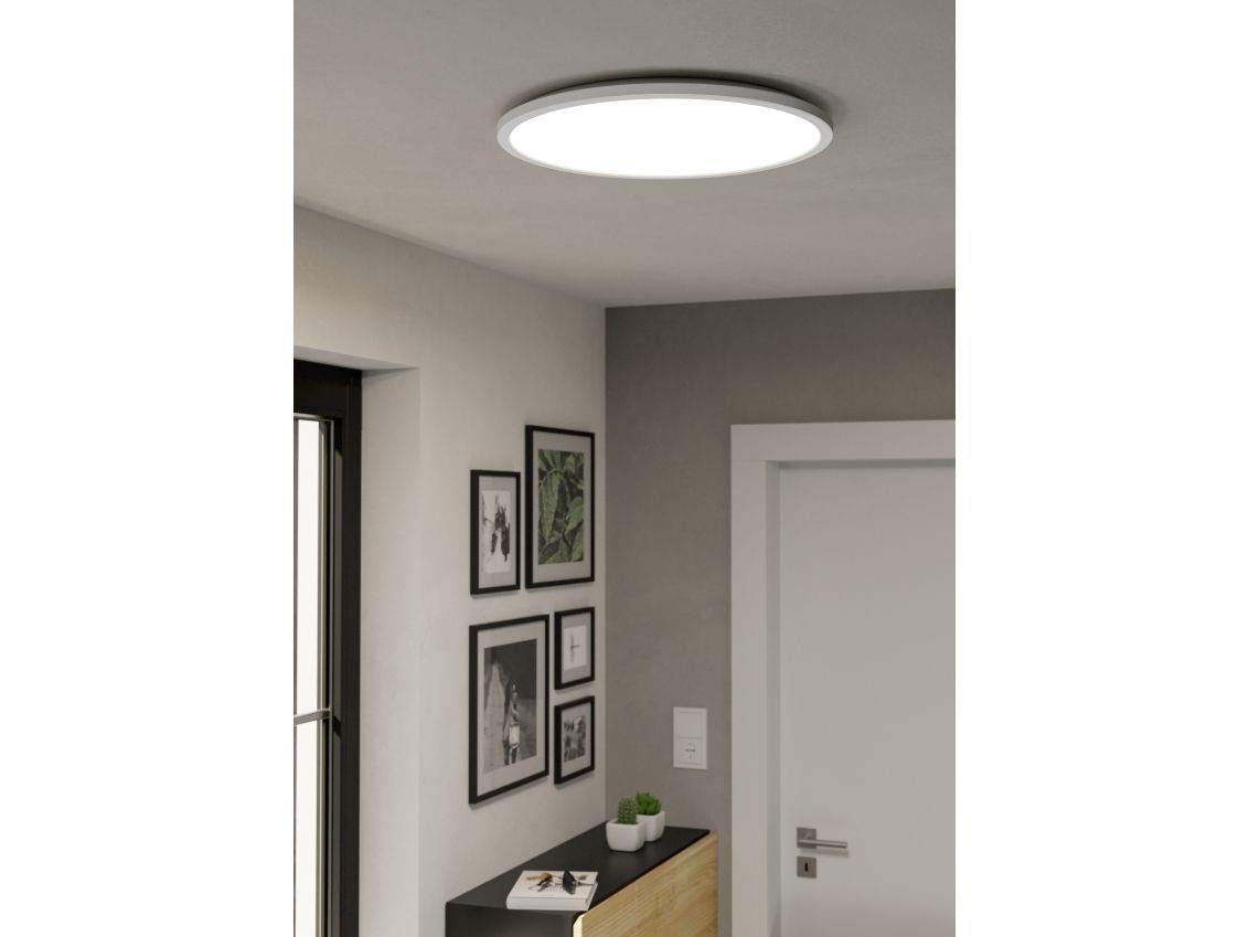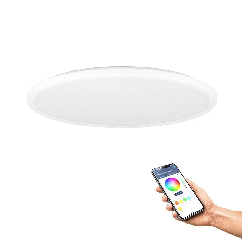 LED-loftlampen ROVITO-Z fra Smart Home-serien connect.z kendetegnes ved sit minimalistiske design. Med en højde på kun 3 cm og en diameter på 50 cm passer den runde loftslampe problemfrit ind i ethvert boligkoncept. Både kabinet og skærm er lavet af hvid plast. De integrerede LED’er giver dig fleksible lysmuligheder: Vælg mellem varmt hvidt, neutralt hvidt eller koldt hvidt lys samt et væld af RGB-lysfarver. Det øverste lys i lampen tilbyder individuelle RGB-indstillinger til indirekte belysning, mens det nederste lys kan indstilles fra varmt hvidt til koldt hvidt. Både det direkte og det indirekte lys kan tændes og slukkes separat samt dæmpes. Styringen af lampen sker via den gratis app (AwoX Home Control), som giver adskillige komfortfunktioner som dæmpning, timer og tilstedeværelsessimulering. Takket være Bluetooth og ZigBee 3.0 kan lampen også styres via kompatible stemmeassistenter som Amazon Alexa eller Google Assistant. Derudover er styring via en separat tilgængelig fjernbetjening mulig. ROVITO-Z LED-loftslampen fra connect.z smart home-serien udmærker sig ved sit minimalistiske design. Med en højde på kun 3 cm og en diameter på 50 cm passer den runde loftslampe perfekt ind i ethvert boligkoncept. Både huset og skærmen er lavet af hvid plast. De integrerede LED'er giver dig fleksible belysningsmuligheder: Vælg mellem varmt hvidt, neutralt hvidt eller koldt hvidt lys samt en række RGB-lysfarver. Det øverste lys på disse lys tilbyder individuelle RGB-indstillinger til indirekte belysning, mens det nederste lys kan justeres fra varm hvid til kold hvid. Både direkte og indirekte lys kan tændes og slukkes separat og dæmpes. Armaturet styres via den gratis app (AwoX Home Control), som muliggør adskillige komfortfunktioner såsom dæmpning, timer og tilstedeværelsessimulering. Takket være Bluetooth og ZigBee 3.0 kan lyset også styres via kompatible stemmeassistenter som Amazon Alexa eller Google Assistant. Derudover er det muligt at styre via en separat tilgængelig fjernbetjening.