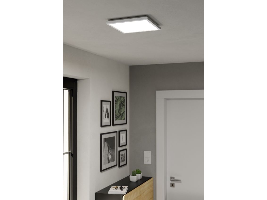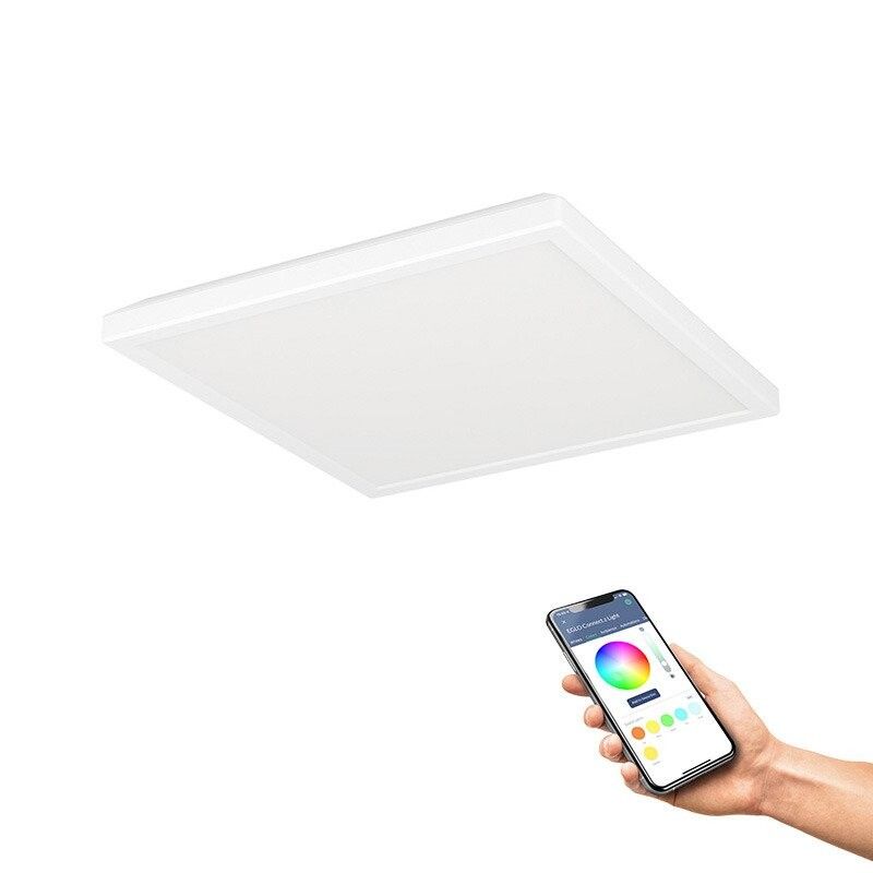 ROVITO-Z LED-loftslampen fra connect.z smart home-serien imponerer med sit moderne design og innovative teknologi. Den firkantede loftslampe med en længde på 29 cm, en bredde på 29 cm og en højde på kun 3 cm passer perfekt ind i ethvert moderne interiør. Huset er lavet af sort plast, mens den hvide plastskærm sikrer en jævn og blændfri lysfordeling. De integrerede LED'er giver dig mulighed for at designe lyset efter dine ønsker. Du kan vælge mellem varm hvid, neutral hvid og koldt hvidt lys samt en bred vifte af RGB-farver. Både direkte og indirekte lys kan tændes og slukkes separat og dæmpes. Lyset styres bekvemt via den gratis app (AwoX Home Control), som tilbyder dig funktioner som dæmpning, timer, tilstedeværelsessimulering og meget mere. Takket være Bluetooth og ZigBee 3.0-teknologi kan du også styre lyset via kompatible stemmeassistenter som Amazon Alexa eller Google Assistant. Derudover er betjening også mulig via en separat tilgængelig fjernbetjening.