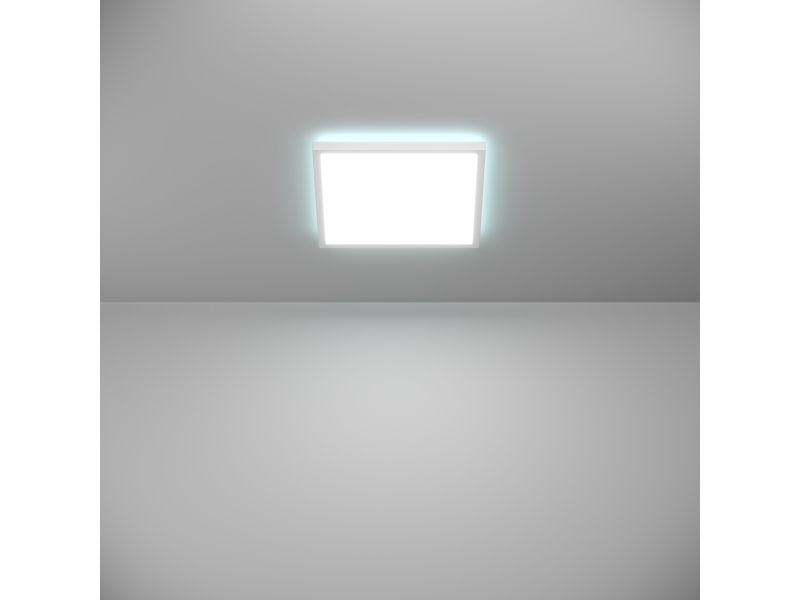 LED-loftlampen ROVITO-Z fra Smart Home-serien connect.z kendetegnes ved sit minimalistiske design. Med en længde og bredde på hver 29 cm samt en højde på kun 3 cm passer den firkantede loftslampe sømløst ind i ethvert moderne boligkoncept. Både huset og skærmen er lavet af hvid plastik, hvilket sikrer en jævn og blændfri lysfordeling. De integrerede LED'er giver dig fleksible lysmuligheder: Vælg mellem varmt hvidt, neutralt hvidt eller koldt hvidt lys samt en række RGB-lysfarver. Det øverste lys i denne lampe tilbyder individuelle RGB-indstillinger til indirekte belysning, mens det nederste lys kan indstilles fra varmt hvidt til koldt hvidt. Både det direkte og det indirekte lys kan tændes og slukkes separat samt dæmpes. Lampens styring foregår via den gratis app (AwoX Home Control), som muliggør mange komfortfunktioner som dæmpning, timer og tilstedeværelsessimulering. Takket være Bluetooth og ZigBee 3.0 kan lampen også styres via kompatible stemmeassistenter som Amazon Alexa eller Google Assistant. Derudover er styring via en separat tilgængelig fjernbetjening mulig.