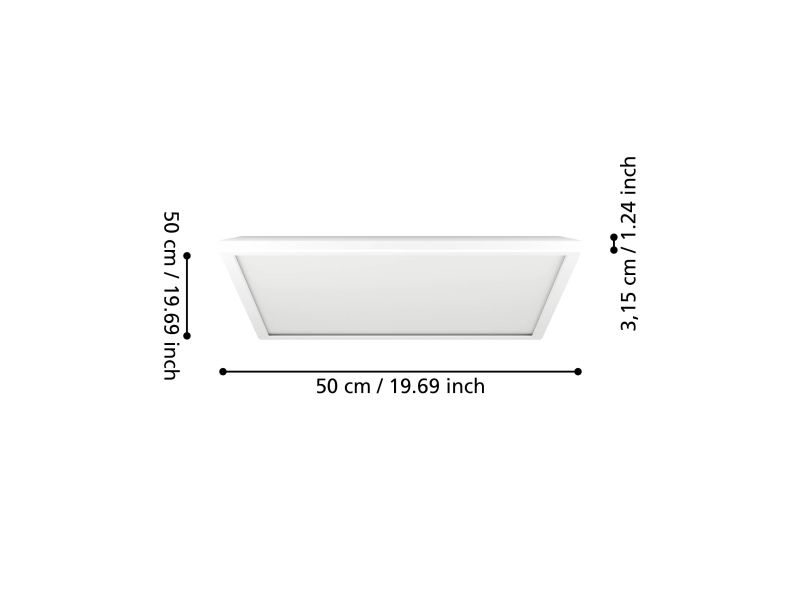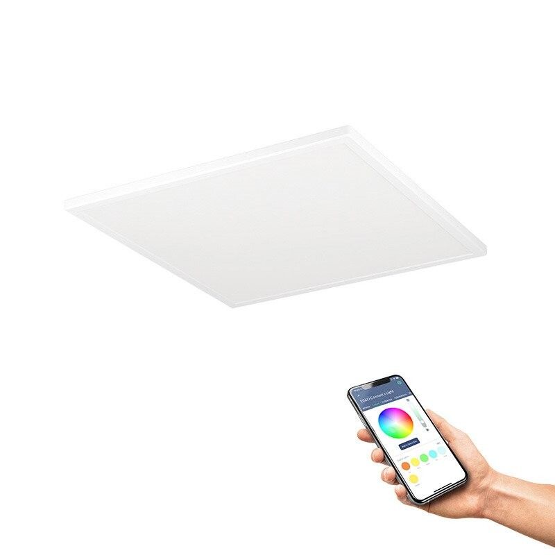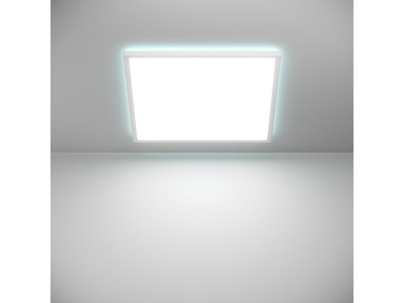 LED-loftlampen ROVITO-Z fra Smart Home-sortimentet connect.z kendetegnes ved sit minimalistiske design. Med en længde og bredde på hver 50 cm samt en højde på kun 3 cm integreres den firkantede loftlampe problemfrit i ethvert moderne boligkoncept. Både huset og skærmen er fremstillet af hvid plastik, hvilket sikrer en jævn og blændfri lysfordeling. De integrerede LED’er tilbyder fleksible lysmuligheder: Vælg mellem varm hvid, neutral hvid eller kold hvid samt en række RGB-lysfarver. Det øverste lys i lampen giver individuelle RGB-indstillinger til indirekte belysning, mens det nederste lys kan justeres fra varm hvid til kold hvid. Både det direkte og det indirekte lys kan tændes og slukkes samt dæmpes separat. Styringen af lampen sker via den gratis app (AwoX Home Control), som muliggør adskillige komfortfunktioner som dæmpning, timer og tilstedeværelsessimulering. Takket være Bluetooth og ZigBee 3.0 kan lampen også styres via kompatible stemmeassistenter som Amazon Alexa eller Google Assistant. Derudover er styring via en separat tilgængelig fjernbetjening også muligt. ROVITO-Z LED-loftslampen fra connect.z smart home-serien udmærker sig ved sit minimalistiske design. Med en længde og bredde på 50 cm hver og en højde på kun 3 cm passer den kantede loftslampe perfekt ind i ethvert moderne boligkoncept. Både huset og skærmen er lavet af hvid plast, hvilket sikrer en jævn og blændfri lysfordeling. De integrerede LED'er giver dig fleksible belysningsmuligheder: Vælg mellem varmt hvidt, neutralt hvidt eller koldt hvidt lys samt en række RGB-lysfarver. Det øverste lys på dette lys tilbyder individuelle RGB-indstillinger til indirekte belysning, mens det nederste lys kan justeres fra varm hvid til kold hvid. Både direkte og indirekte lys kan tændes og slukkes separat og dæmpes. Armaturet styres via den gratis app (AwoX Home Control), som muliggør adskillige komfortfunktioner såsom dæmpning, timer og tilstedeværelsessimulering. Takket være Bluetooth og ZigBee 3.0 kan lyset også styres via kompatible stemmeassistenter som Amazon Alexa eller Google Assistant. Derudover er det muligt at styre via en separat tilgængelig fjernbetjening.
