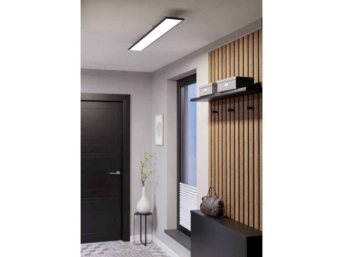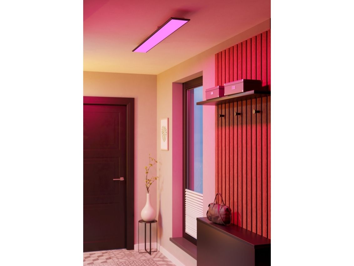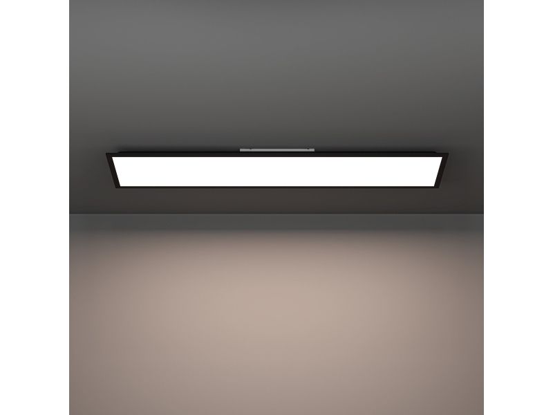 Med sit enkle, minimalistiske udseende passer LED-loftslampen MORADILLO-Z perfekt ind i moderne interiører – for eksempel over arbejdsområder, spiseborde eller på kontorer. Den smarte lampe er en del af Connect.Z-serien og muliggør fleksibel styring via app, stemmekommando eller separat tilgængelig fjernbetjening. Ud over justering af farvetemperaturen (CCT) fra varm- til koldhvid kan lysfarven også varieres i RGB-spektrum – ideelt til forskellige stemninger og anvendelser. Den flade konstruktion og det matte sorte understreger lampens tidssvarende karakter, mens den jævne lysfordeling skaber en behagelig rumatmosfære.