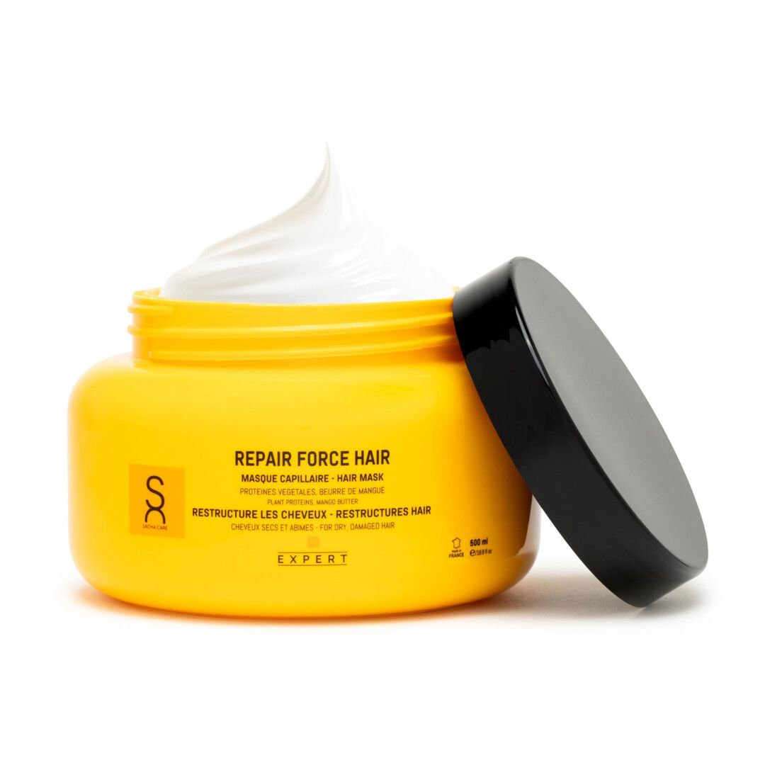 Forkæl dit hår med Repair Force Hair Mask fra Sacha Care – den ultimative redning til tørt, skadet eller livløst hår.